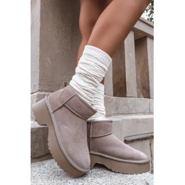 Dámské sněhule z přírodního semiše vyhřívané kožešinou Khaki Milora