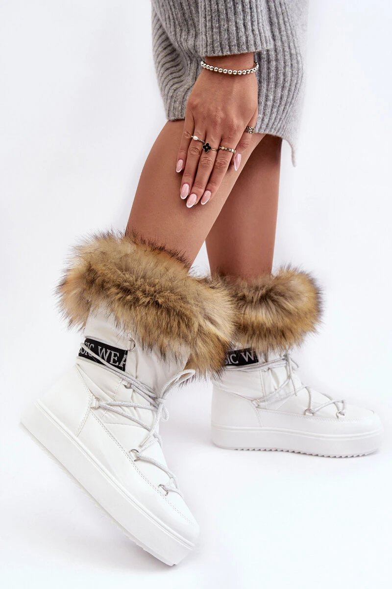 Módní sněhule jsou vyrobeny z materiálu, který je odolný vůči chladu a větru. Svršek je zakončen umělou kožešinou. Klasický krajkový model. Sněhule jsou namontovány na masivní platformě. Mají izolaci v podobě husté kožešiny. Zdobeno stuhou s potiskem. Extrémně teplé a stylové zároveň. Měli byste je mít! Při výběru velikosti použijte tabulku velikostí.