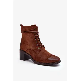 Dámské perforované kotníkové boty na nízkém podpatku S.Barski HY61-8026 Hnědé