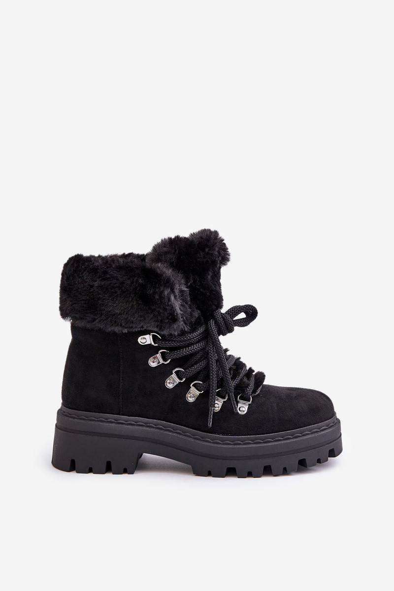 Dámské Šněrovací Boty S Kožíškem Černé Vaminia