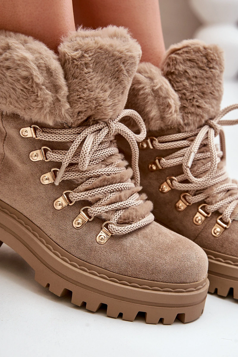 Dámské Šněrovací Boty S Kožíškem Tmavě Béžové Vaminia