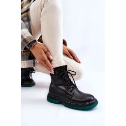 Dámské šněrovací boty se zelenou podrážkou černá Trinah