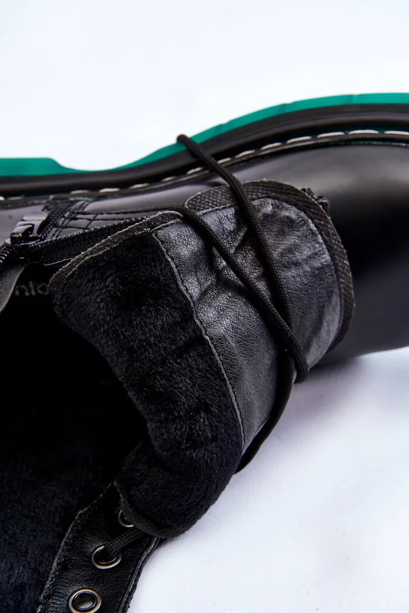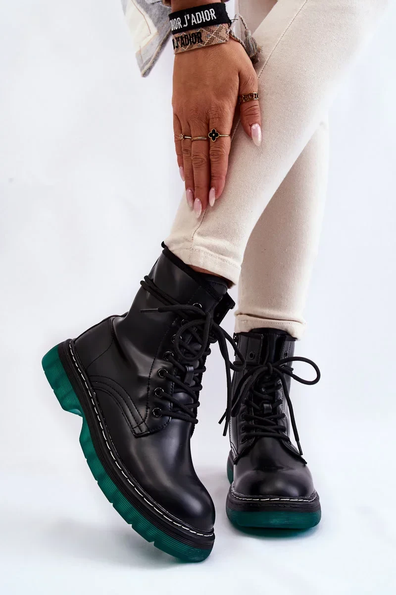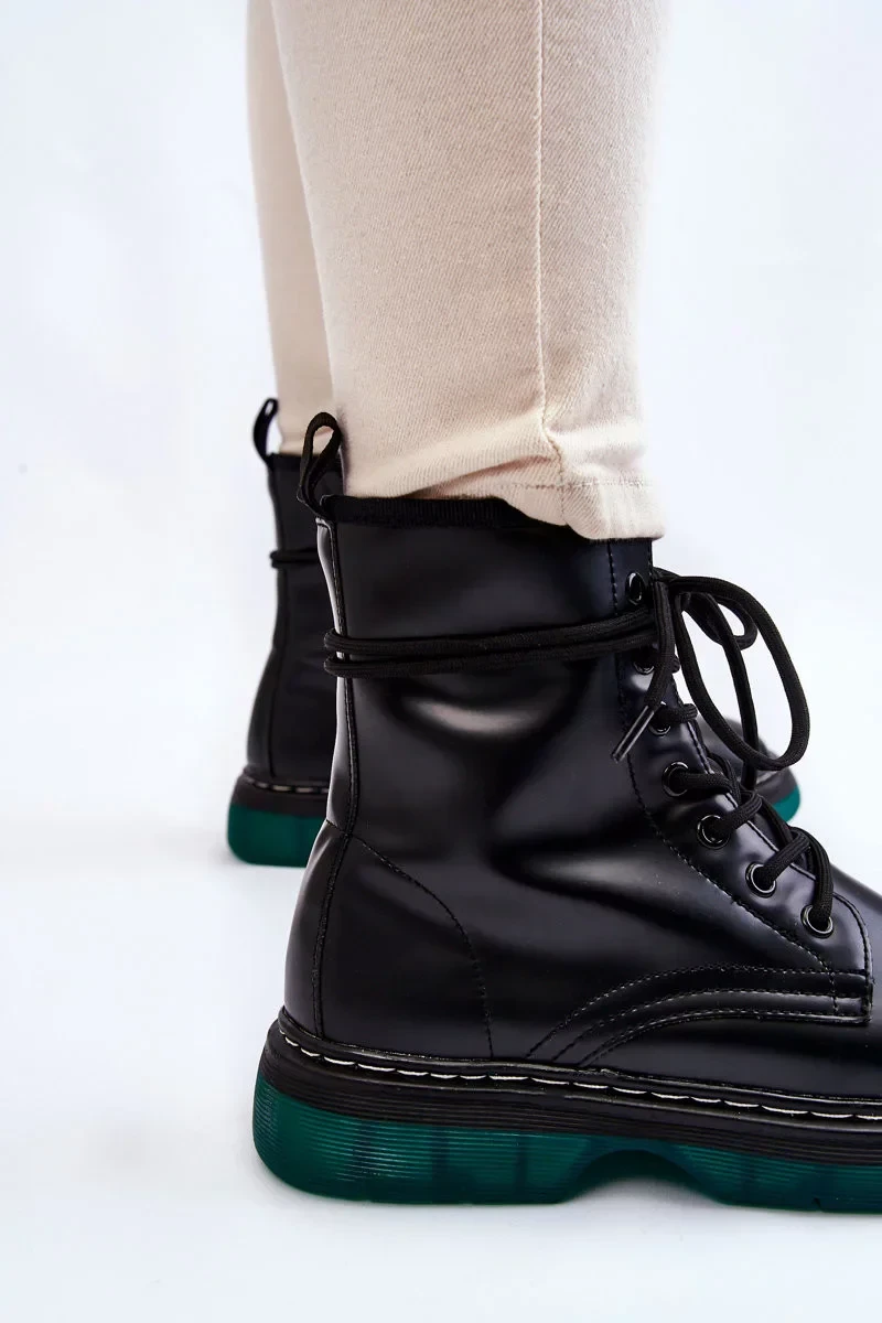 Dámské šněrovací boty se zelenou podrážkou černá Trinah