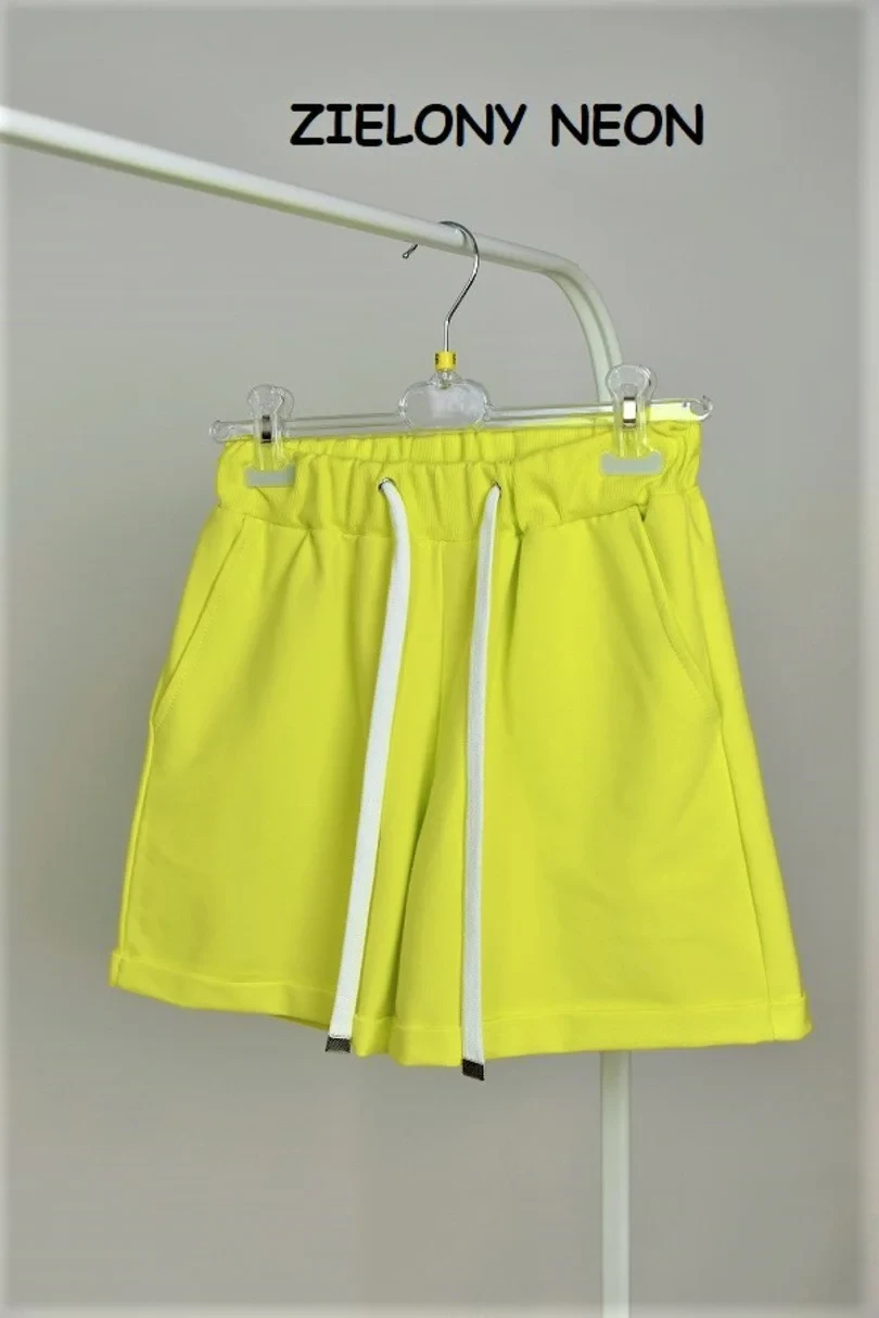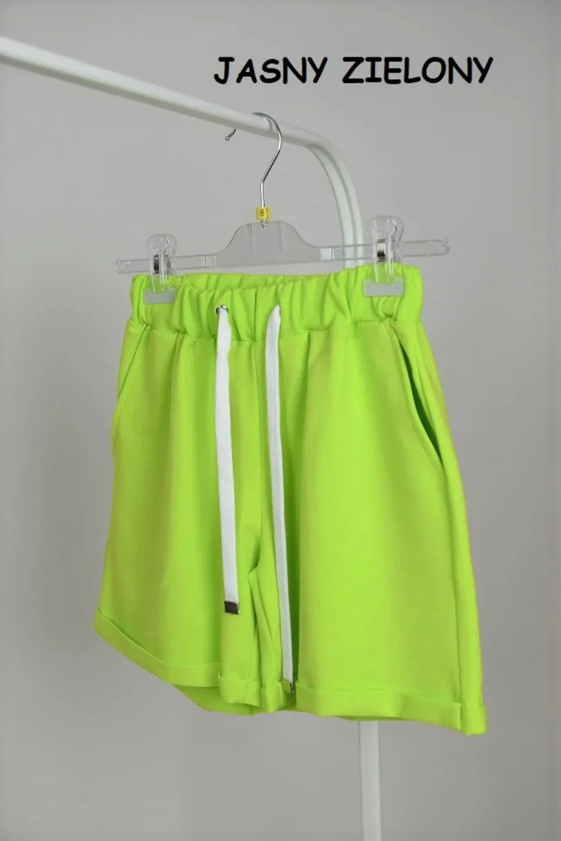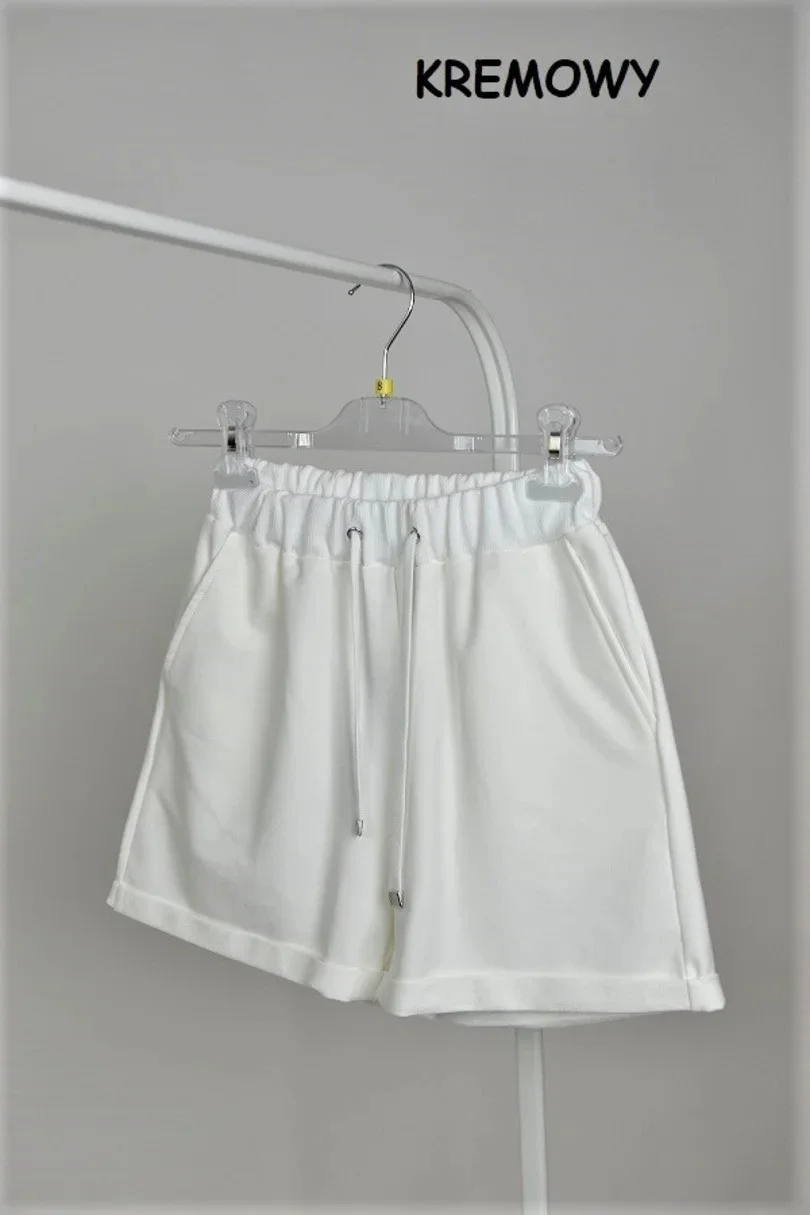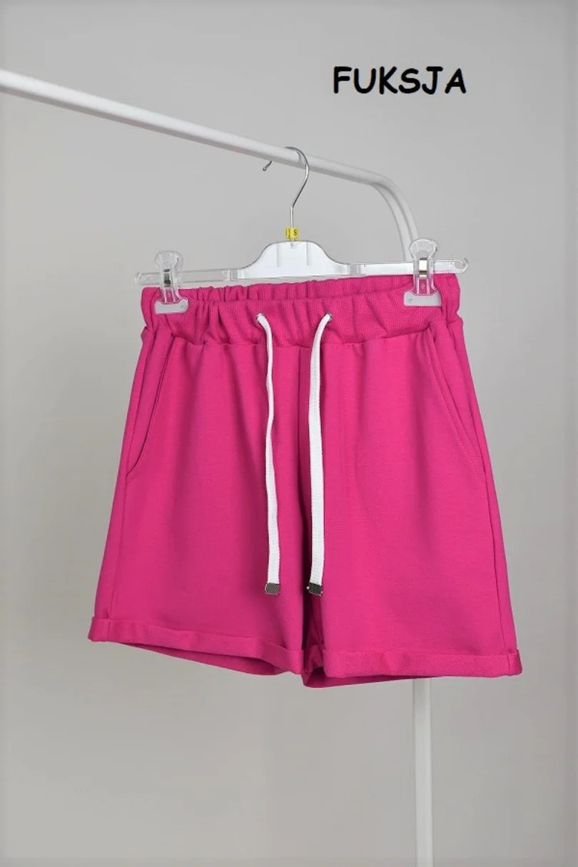 Šortky jsou nepostradatelnou součástí letního šatníku. Tento pohodlný model má kapsičky. Spodní okraj nohavic je ohrnutý.