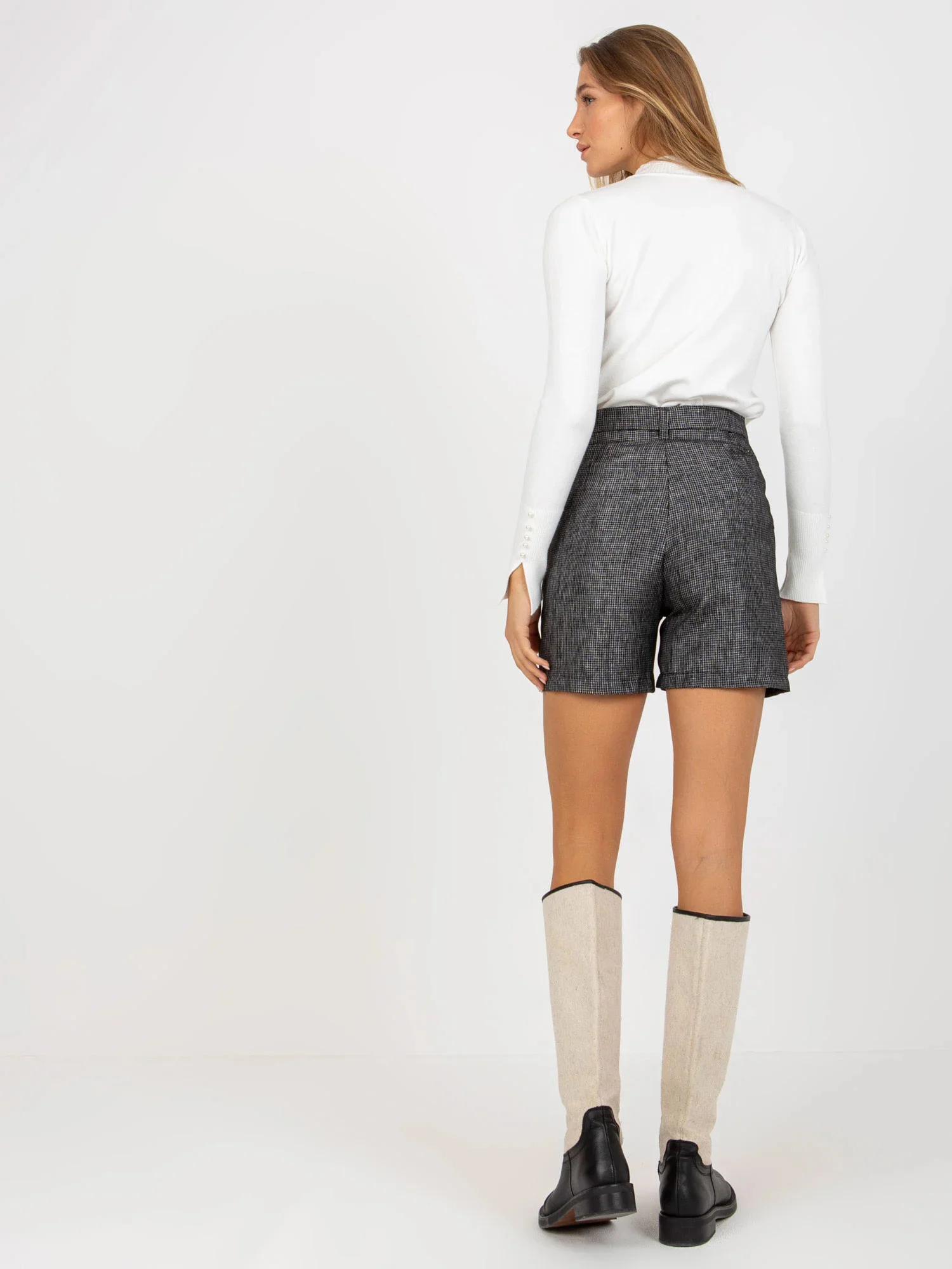 Rozměry šortek ve velikosti 36 měřené na plocho: šířka v pase - 35 cm, výška v pase - 32 cm, celková délka - 42 cm.