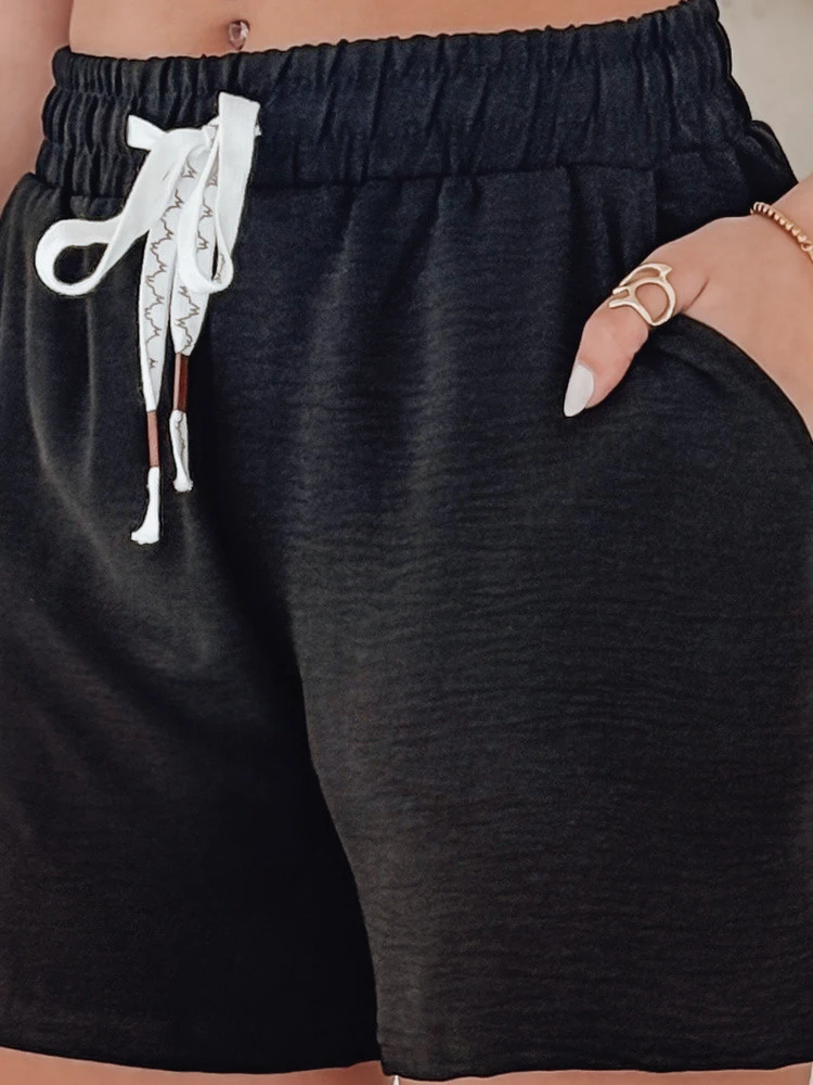 Dámské šortky z jemně strukturované tkaniny zaujmou svou jednoduchostí a prázdninovým šmrncem. Vysoký pas a elastický pásek zajišťují pohodlí, zatímco ozdobná šňůrka dodává originální nádech. Univerzální střih se hodí k topům, košilím i sandálům a je modelem, který lze snadno sladit s každodenními letními outfity.
