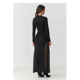 Objevte neuvěřitelně ženské a elegantní maxi šaty, vytvořené pro ženy, které oceňují klasiku s nádechem smyslnosti. Přizpůsobený střih krásně zdůrazňuje postavu, vystavujíce ženské tvary jemným, ale výrazným způsobem. Hluboké a průhledné vložky z tylu po stranách dodávají celému outfitu lehkost a sex appeal a výjimečný charakter. Zakrytý, klasický výstřih je poklonou nadčasové eleganci, vyvažuje odvážnější prvky šatů a dokonale zdůrazňuje linii krku a ramen. Právě tento kontrast dělá celkový dojem stylovým, elegantním a trochou tajemným. Na zádech šatů je diskrétní, skrytý zip, který zajišťuje pohodlné oblékání a perfektní přizpůsobení postavě. Jedná se o praktické řešení, které neodvádí pozornost od efektního střihu, a zároveň zajišťuje pohodlí nošení. Šaty jsou k dostání pouze v klasické, nadčasové černé barvě, která zdůrazňuje jejich eleganci a univerzální charakter. Jedná se o odstín, který nikdy nevyjde z módy, zúžuje postavu a dělá, že outfit vždy vypadá elegantně. Jedná se o ideální návrh na speciální příležitosti, kdy chcete cítit krásně, sebevědomě a výjimečně. Nejde jen o šaty, je to způsob, jak vyjádřit sebe sama.