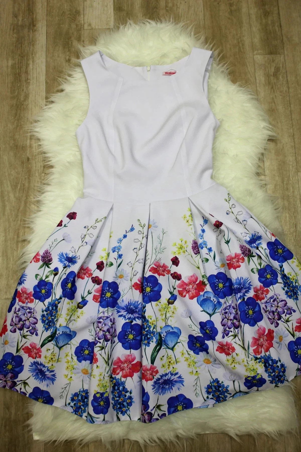 Dámské společenské šaty bez rukávů se skládanou sukní a páskem bílé - Bílá / 40 - Bicotone