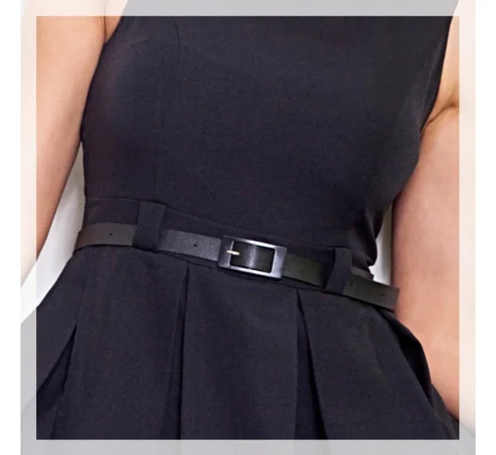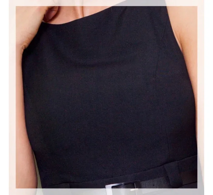 Dámské společenské šaty se sklady a páskem středně dlouhé černé