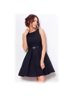 Společenské šaty se spodničkou, skládanou sukní a s páskem v černé barvě, který opticky tyto šaty rozdělí v pase. Pro správné držení pásku na šatech jsou v pase přišita poutka. Šaty se zapínají skrytým zipem v zadní partii. Velmi pěkné a kvalitní dámské společenské šaty. Látka je silnější, a proto jsou vhodné i pro chladnější dny. V zimě samozřejmě pouze v kombinaci s teplým kabátem. Materiál, ze kterého jsou šaty vyrobeny není elastický. Tyto šaty se vyrábějí v EU. Dámské šaty do společnosti se spodničkou, doplněné páskem, se skládanou sukýnkou. Spodnička a podšívka: 100% polyester.
