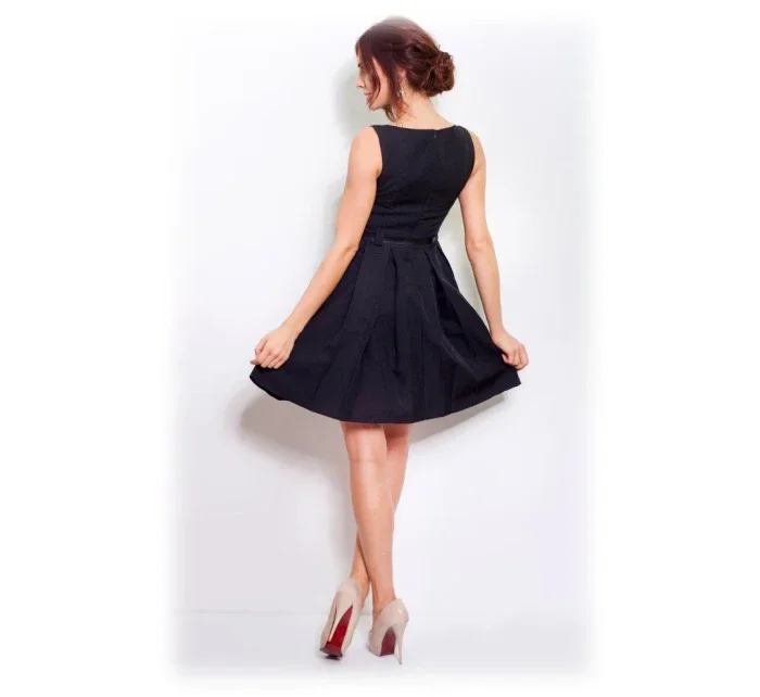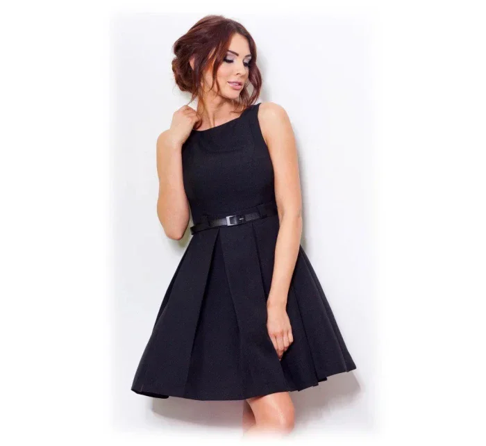 Dámské společenské šaty FOLD se sklady a páskem středně dlouhé černé - Černá - Numoco