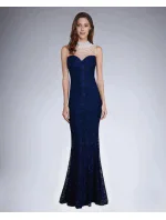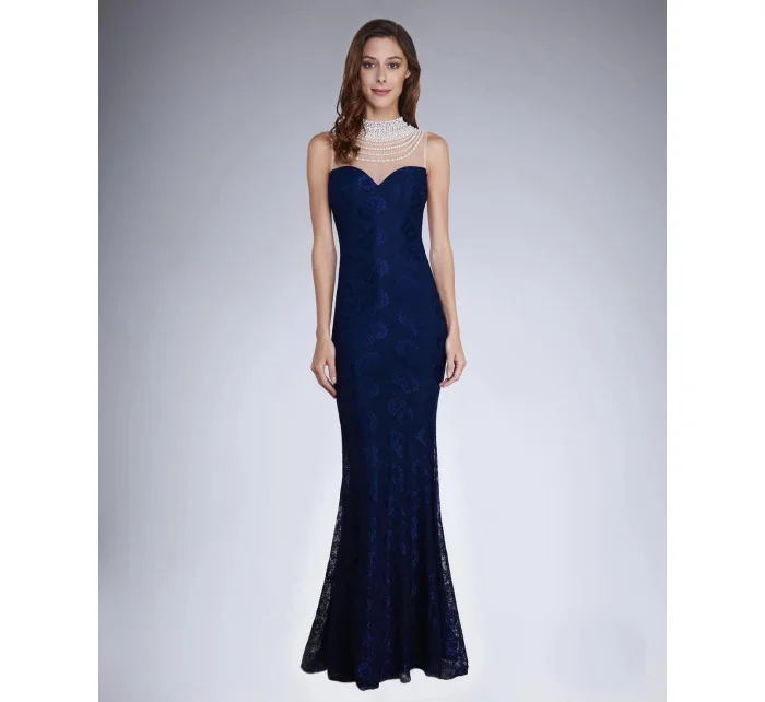 Dámské společenské šaty SOKY SOKA s krajkou a perličkami dlouhé tmavě modré