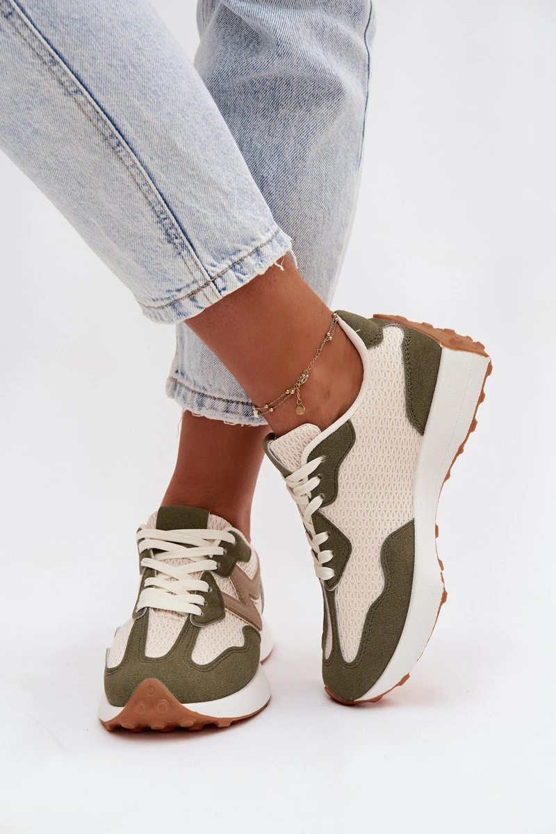 Zelené sportovní boty na platformě krásně doplní outfit v neutrálních barvách, jako je bílá, béžová nebo černá, a dodají mu svěží vzhled.