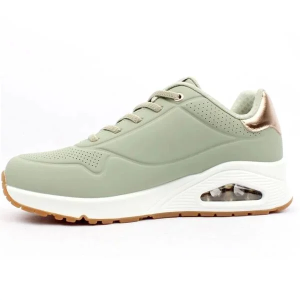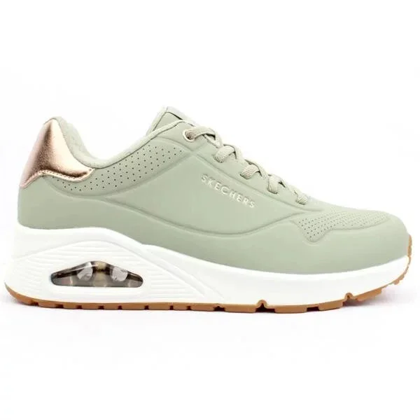 - Boty Skechers Uno Shimmer Away v barvě SAGE jsou úspěšnou kombinací pohodlí a stylu.