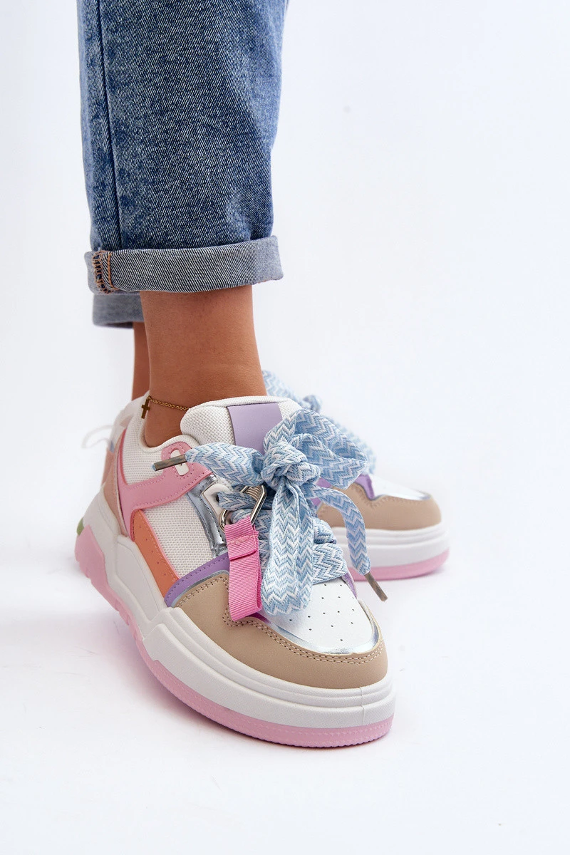 Dámské tenisky byly vyrobeny z kombinace eko kůže a textilního materiálu. Vsazeno na tlustou podrážku z pryže. Klasické šněrování. Šněrování ke kotníku. Kulaté špičky. Tento mimořádně módní model můžete použít k mnoha stylizacím. Určitě si je musíte pořídit do své jarní šatní skříně! Při výběru velikosti se řiďte tabulkou velikostí.