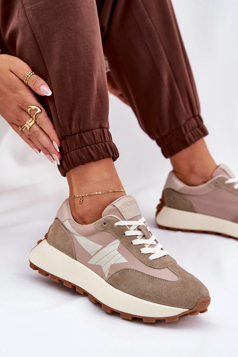 Dámské Sportovní Boty Z Semiše Na Platformě Vinceza 66720 Béžové