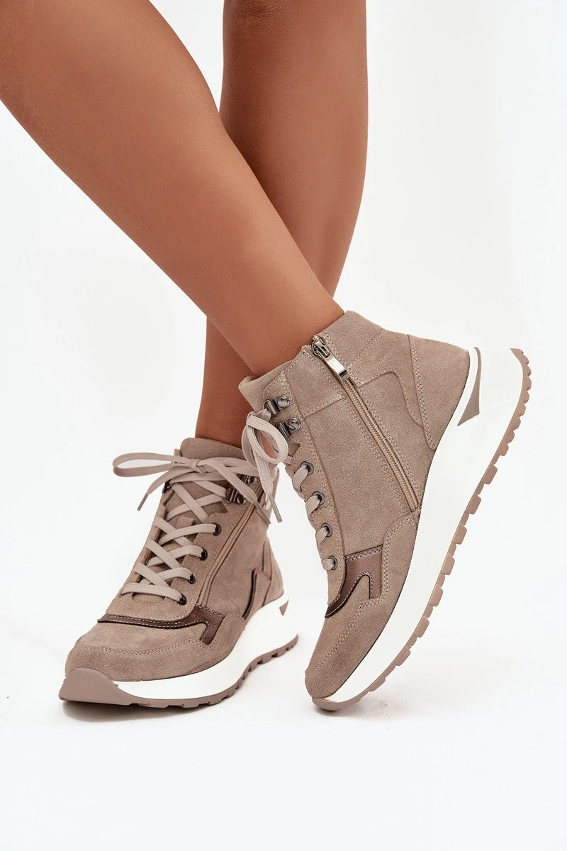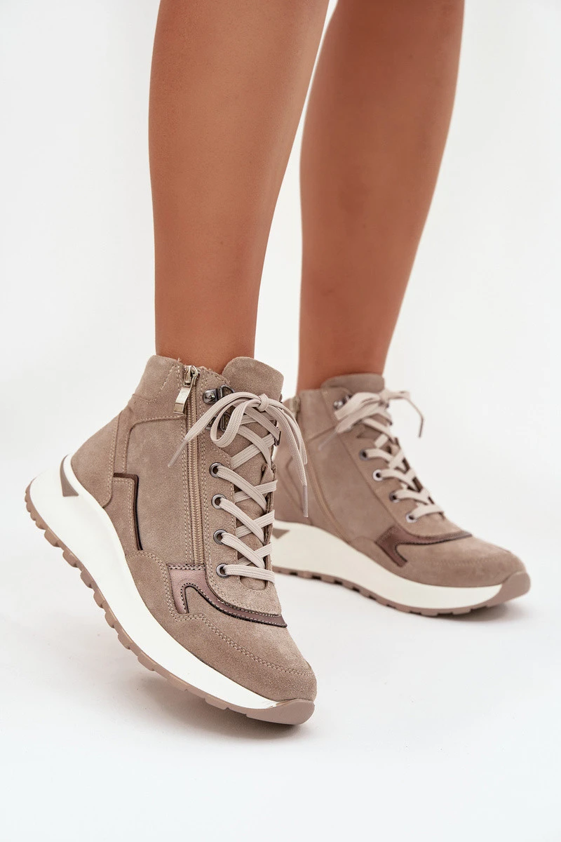 Dámské sportovní kotníkové boty na platformě z přírodního semiše model 21713308 béžové - Zazoo