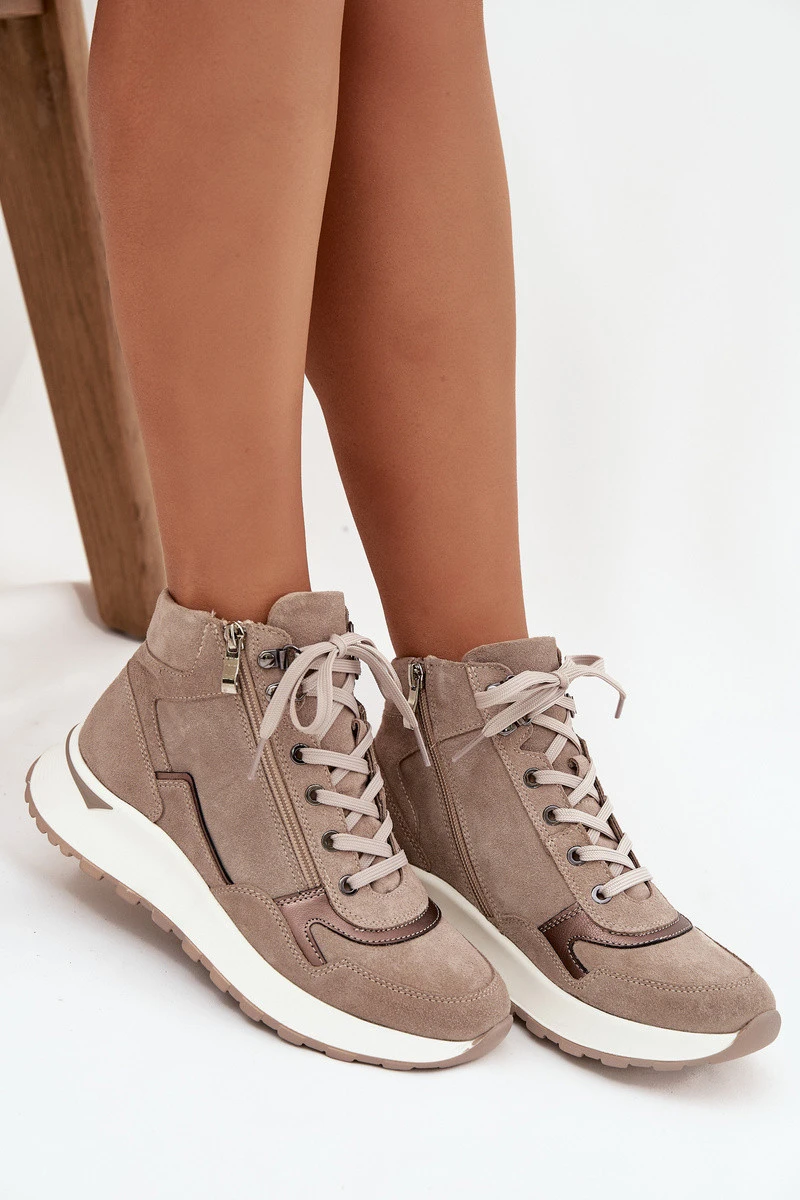 Dámské sportovní kotníkové boty na platformě z přírodního semiše Zazoo Z1239 béžové