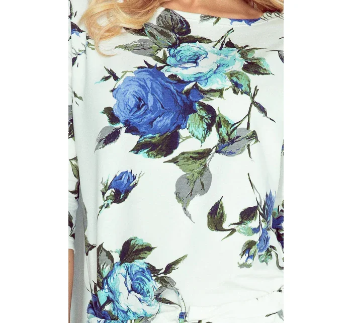 Dámské sportovní šaty netopýří střih s kapsami na zavazování květované modré - Bílá / S - Numoco