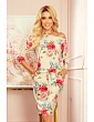 Dámské sportovní šaty s 3/4 rukávy, kapsičkami a potiskem - béžový len a červené květy.