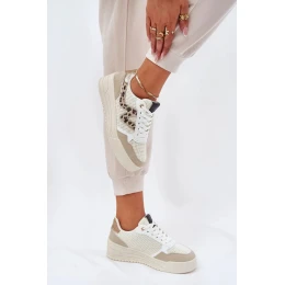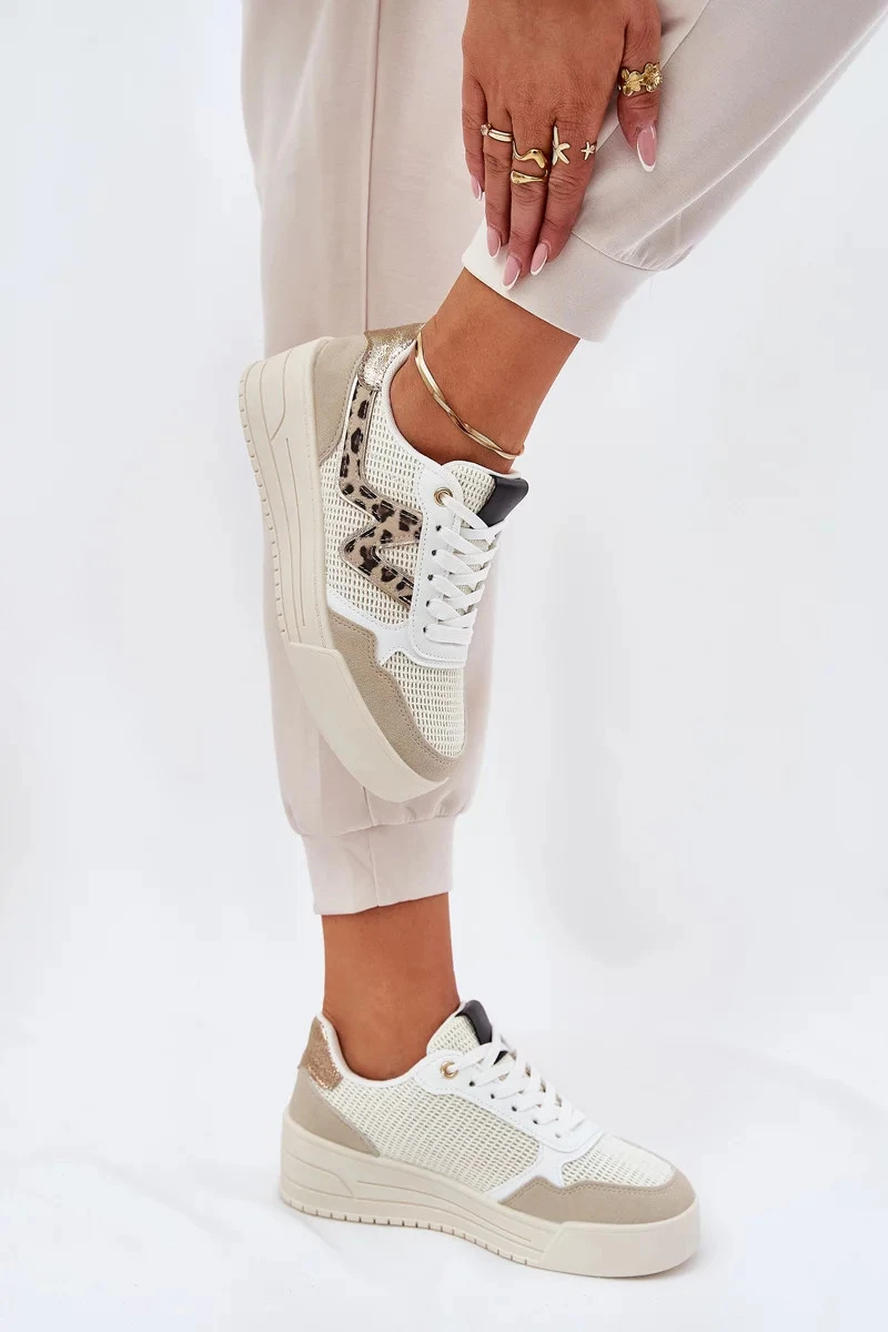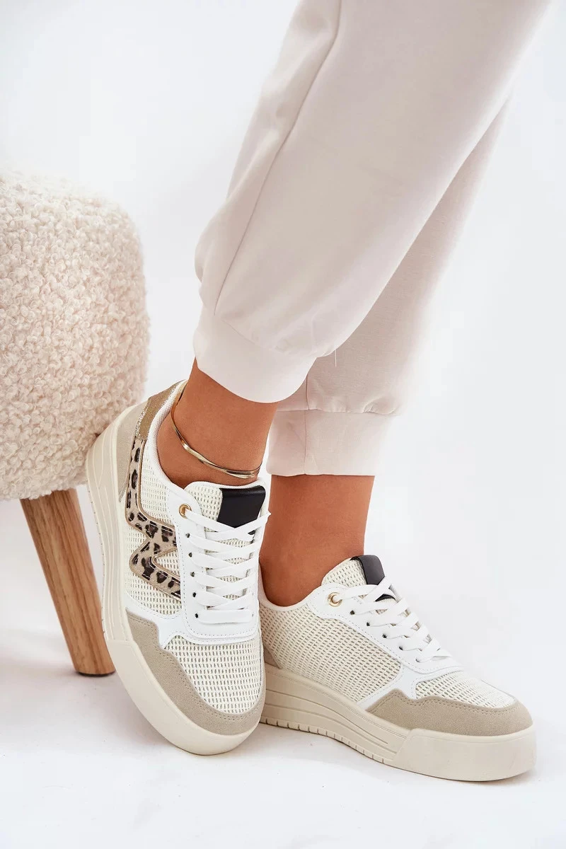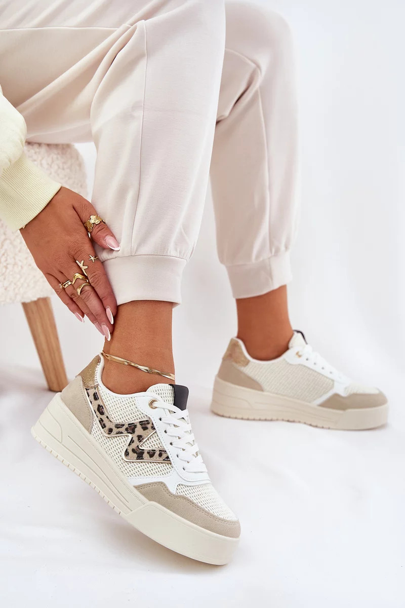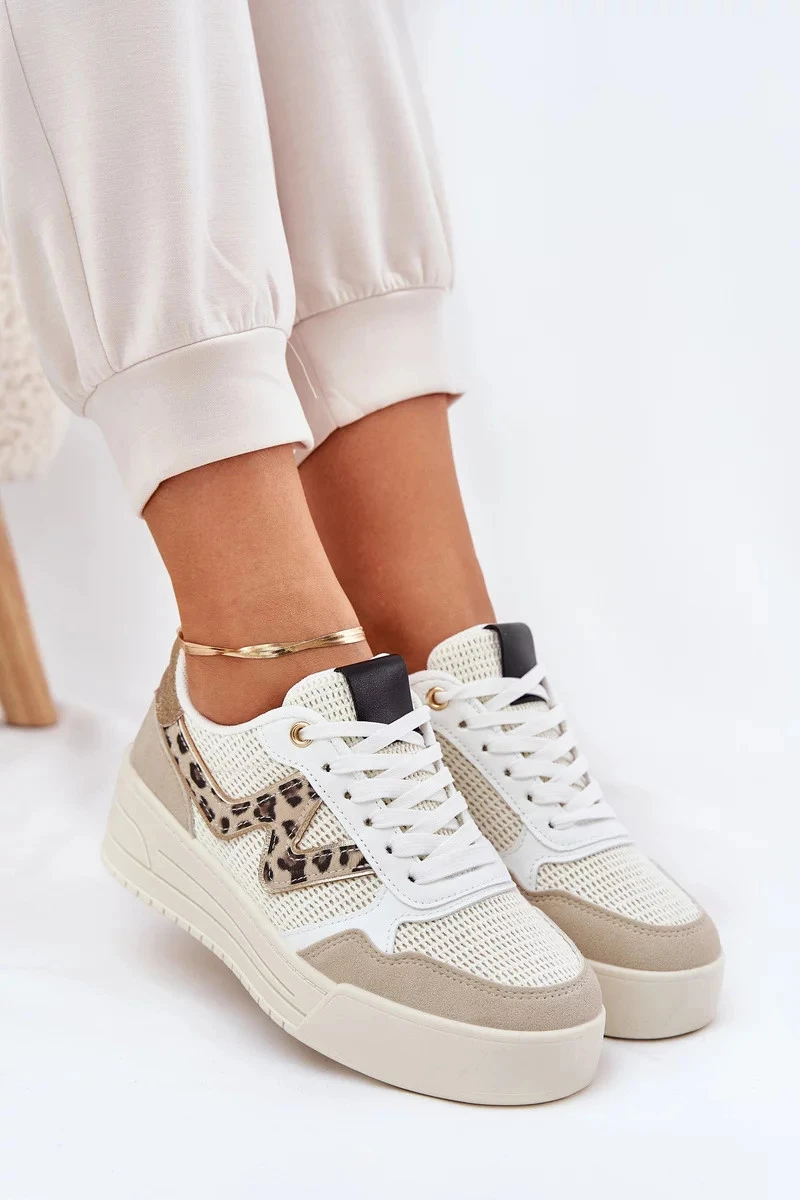 Dámské sportovní tenisky na platformě – béžové s panterím vzorem Lorori