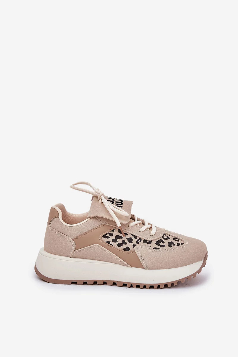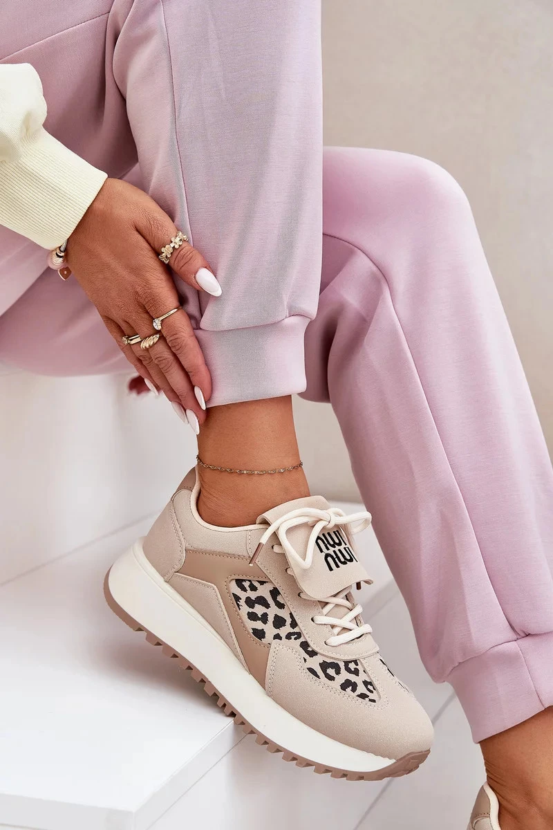Dámské sportovní tenisky na platformě – béžové s panteřím vzorem Pumbes