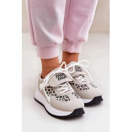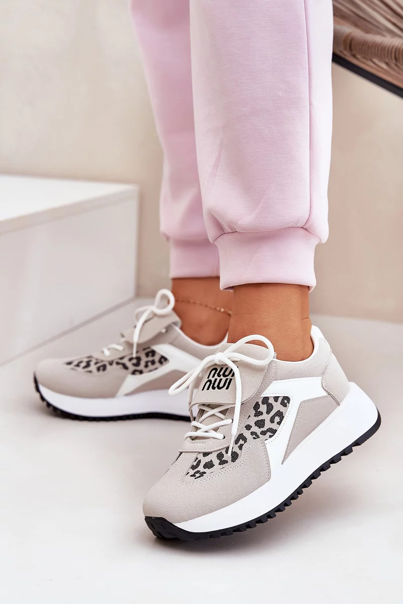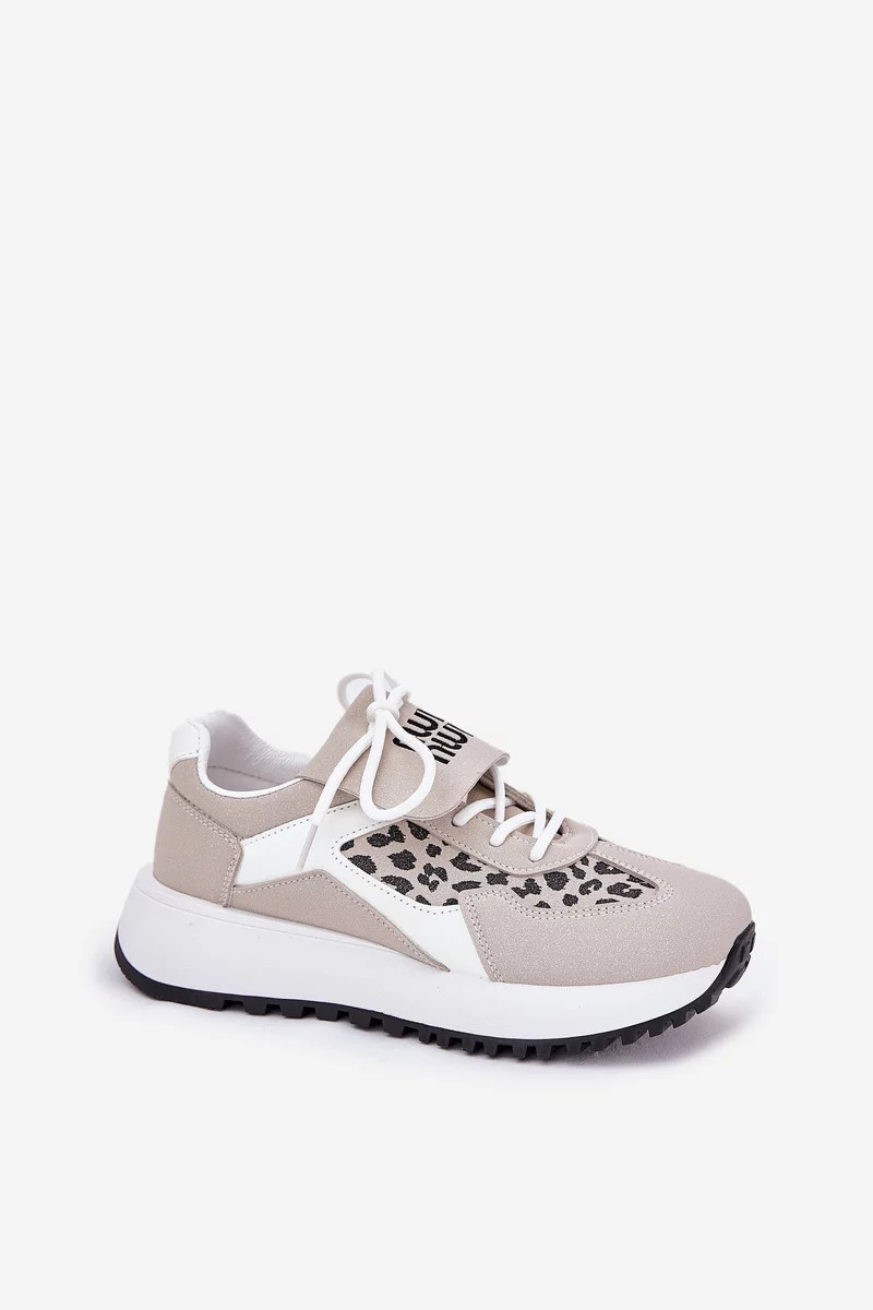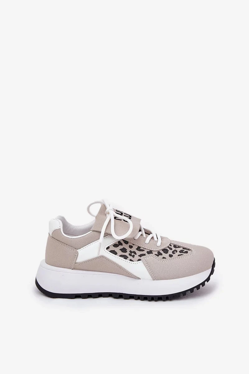 Dámské sportovní tenisky na platformě – bílo-béžové s panterím vzorem Pumbes