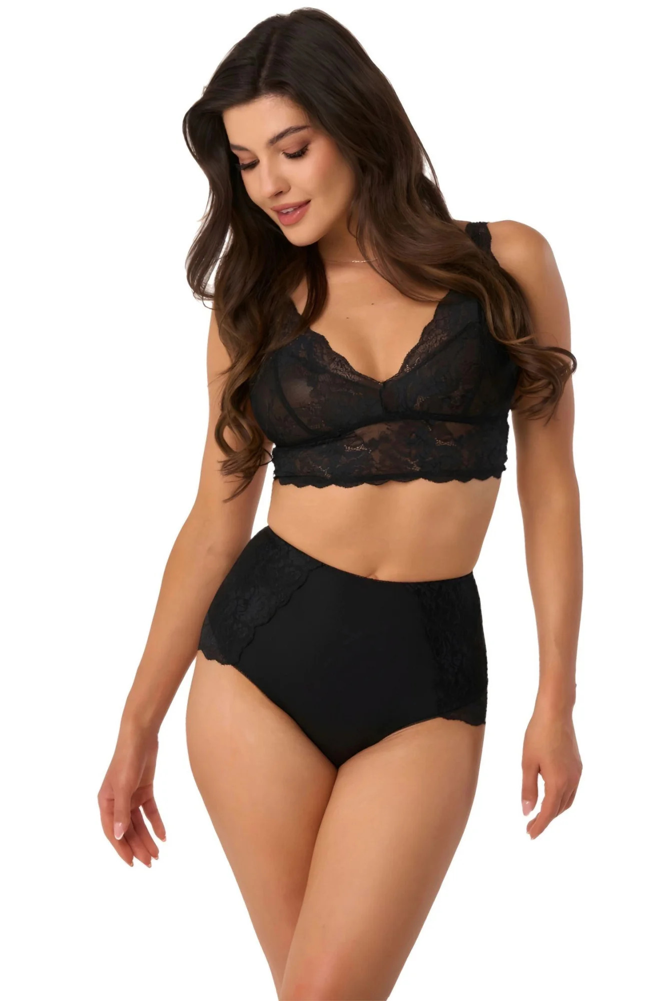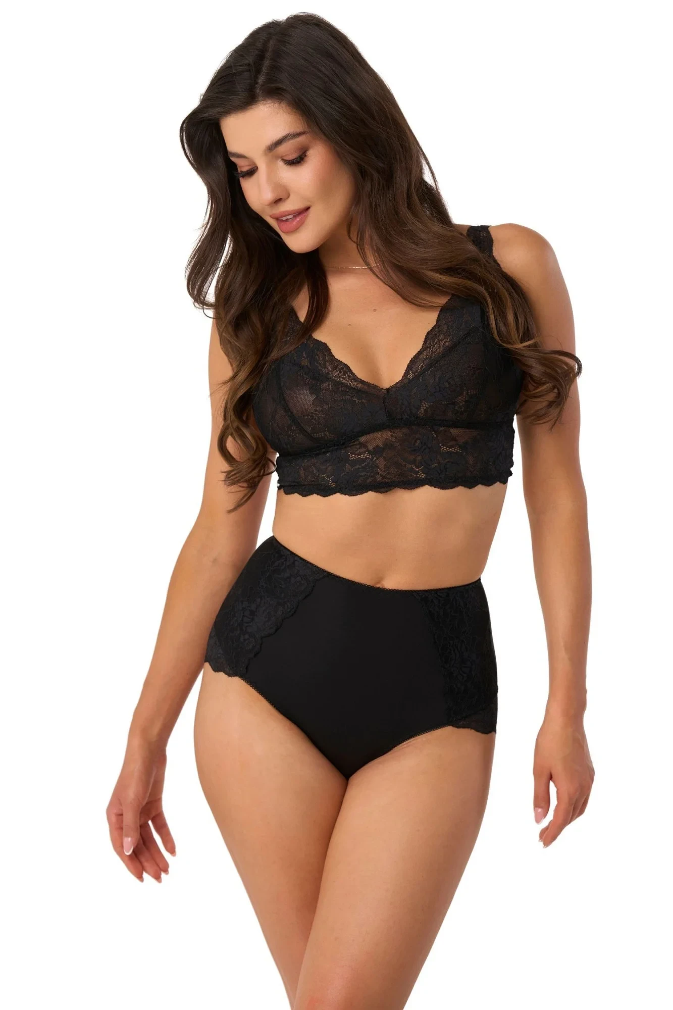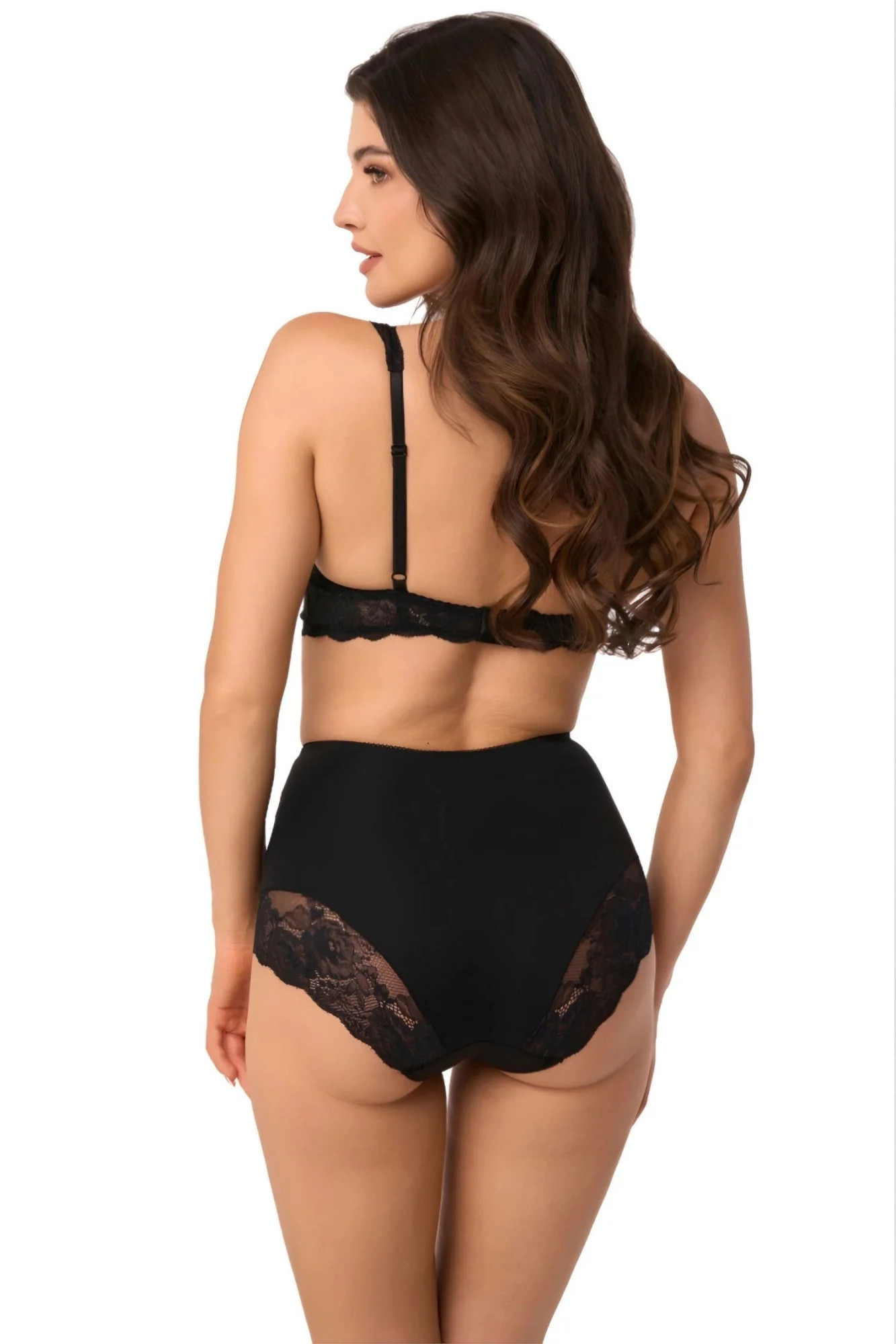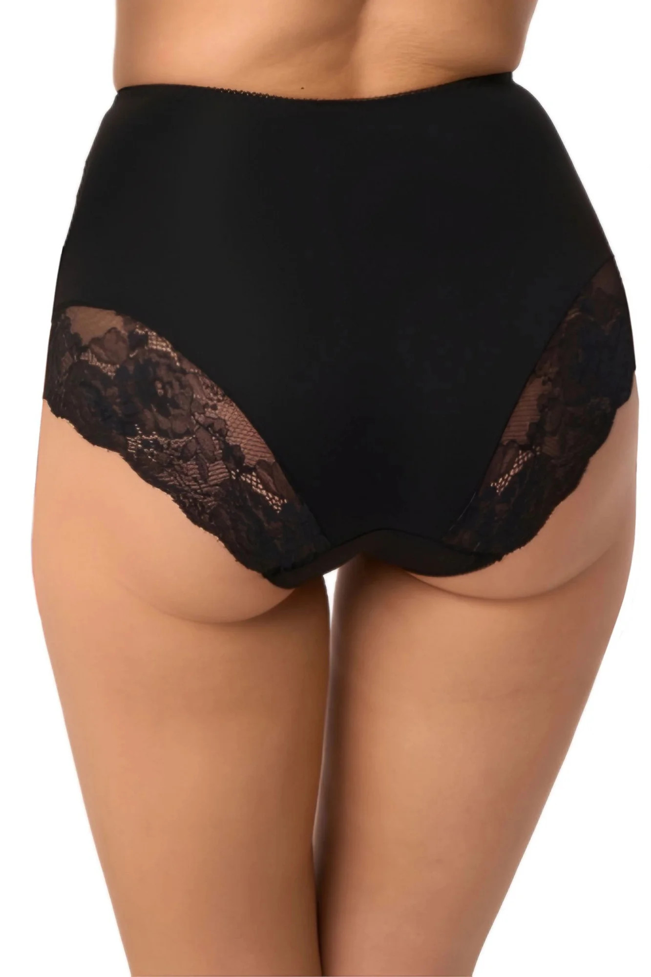 Dámské stahovací kalhotky 204 black plus BABELL - černá barva - z vysoce jakostního mikrovlákna - vyšší pas - stahují břicho a boky - zdobené květinovou krajkou - plochá guma v pase