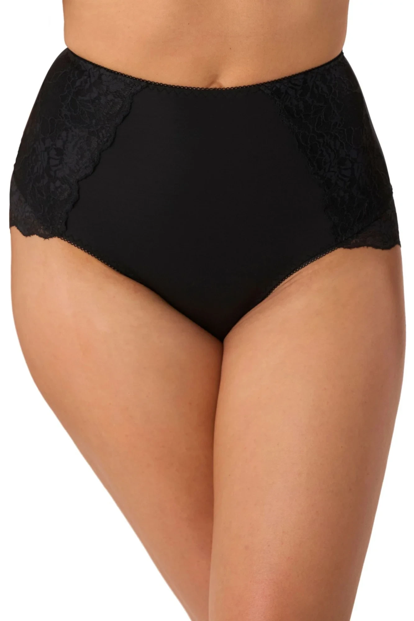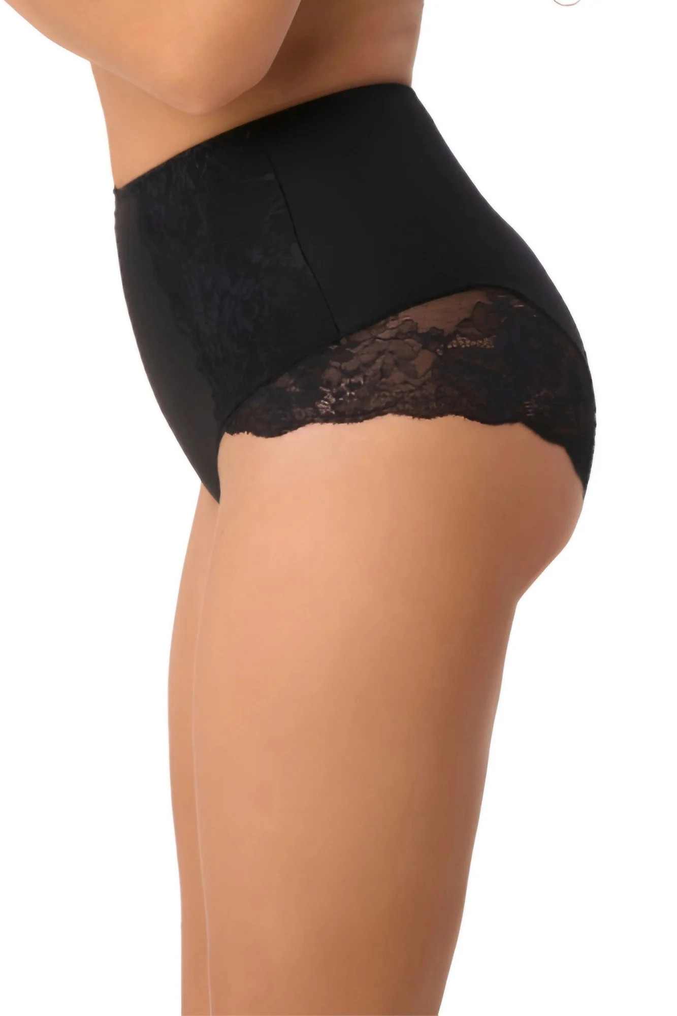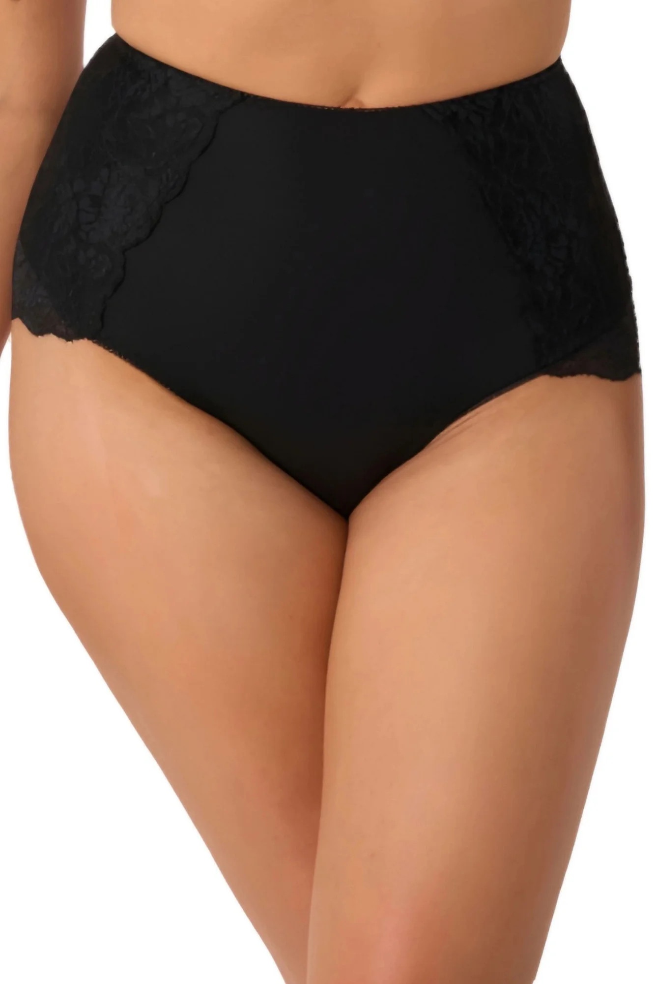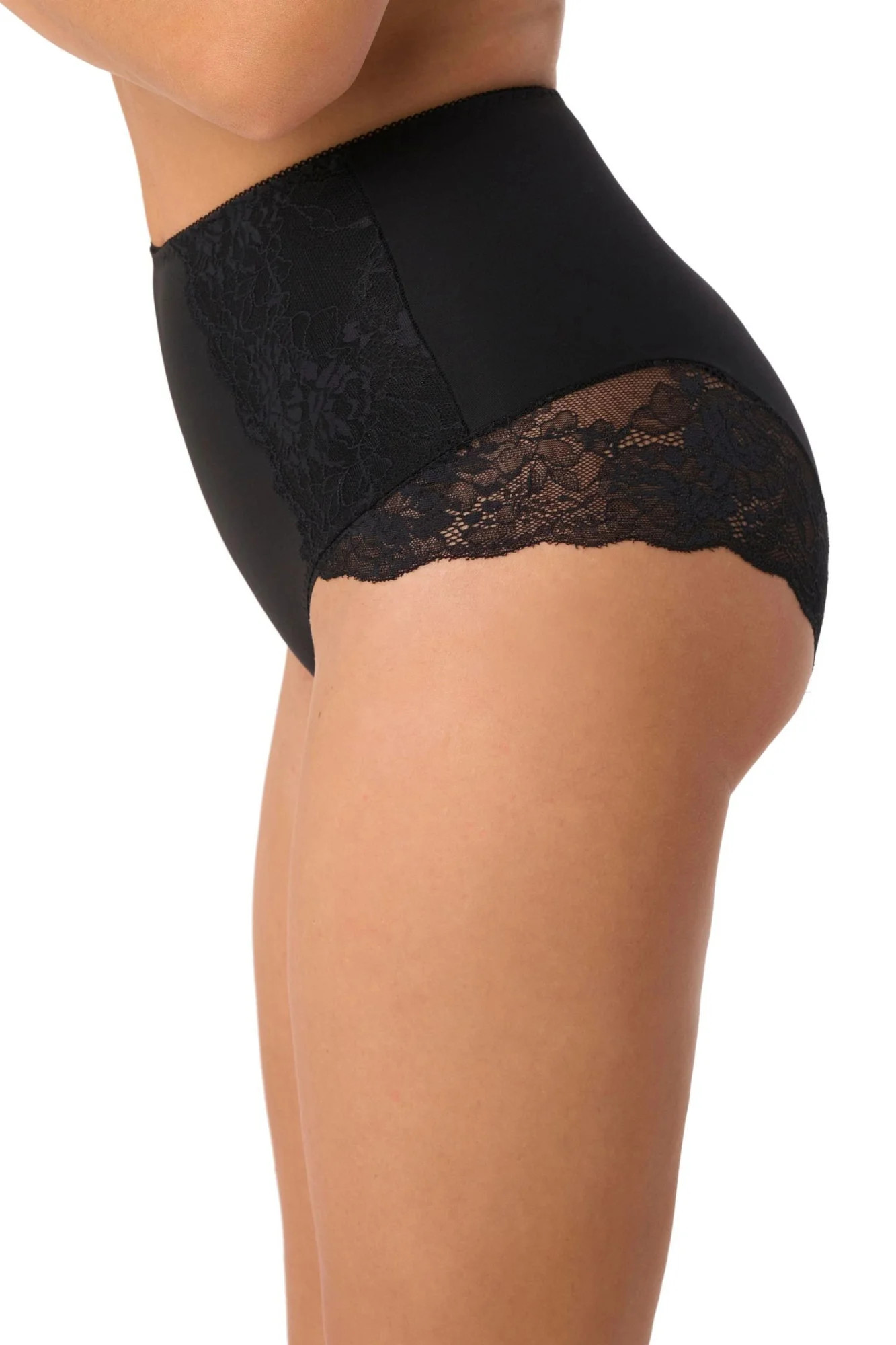 Dámské stahovací kalhotky 204 black plus BABELL - černá barva - z vysoce jakostního mikrovlákna - vyšší pas - stahují břicho a boky - zdobené květinovou krajkou - plochá guma v pase