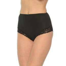 Dámské stahovací kalhotky Ela Mitex - černá barva - kalhotky mají lehce zvýšený pas - příjemný, pevný materiál - obepnou oblast boků a část bříška - elegantní design - nohavičky jsou lemované krajkou ve stejné barvě - pod oblečením nejdou vidět