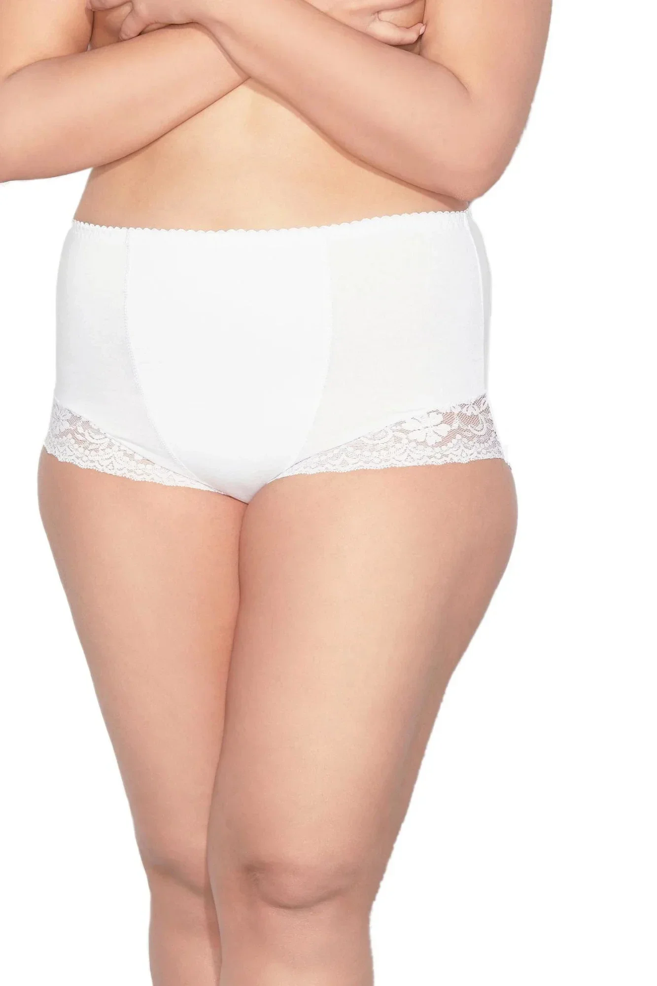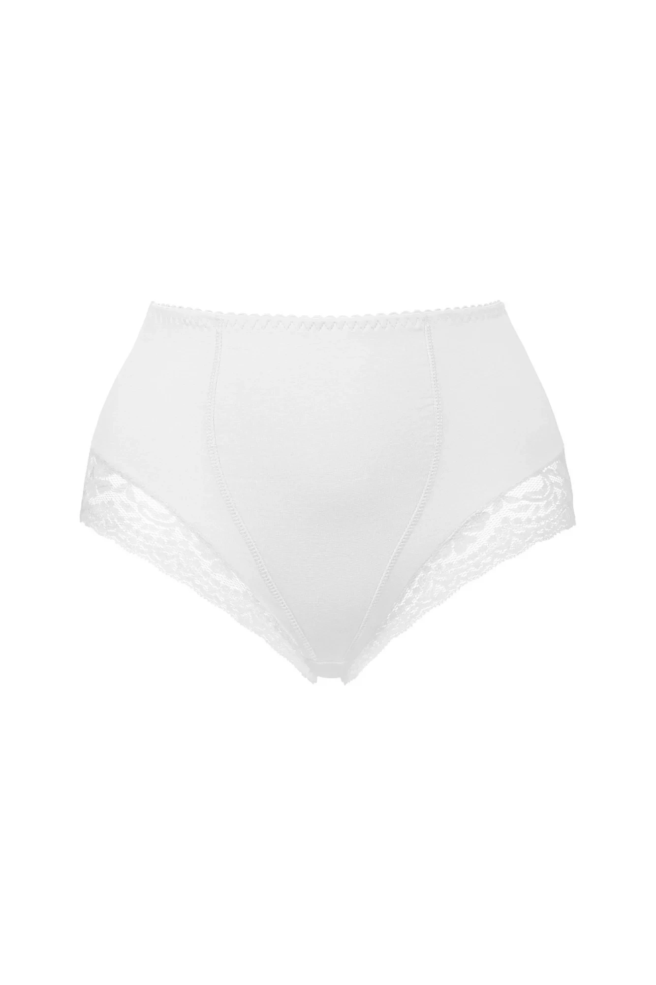 Dámské stahovací kalhotky Ela Mitex - bílá barva - kalhotky mají lehce zvýšený pas - příjemný, pevný materiál - obepnou oblast boků a část bříška - elegantní design - nohavičky jsou lemované krajkou ve stejné barvě - pod oblečením nejdou vidět