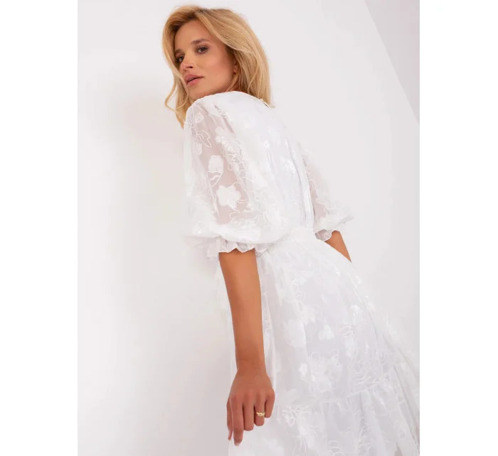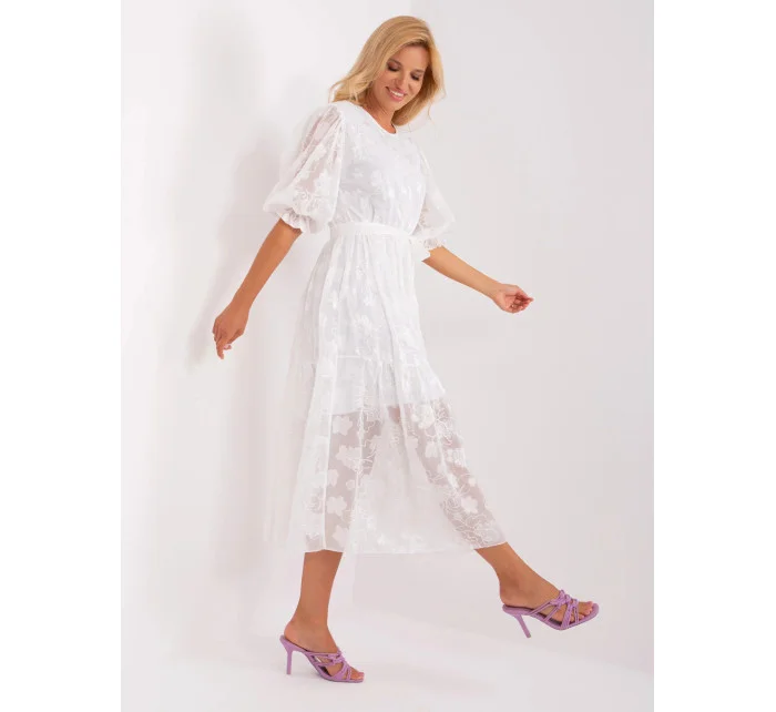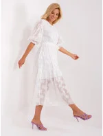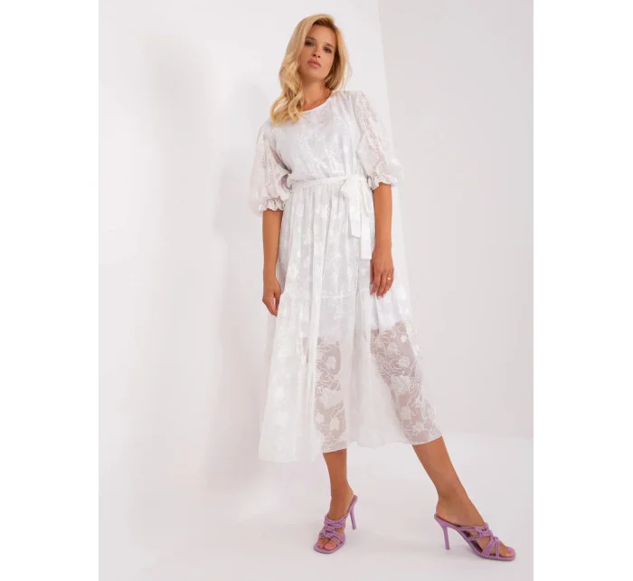 Bílé midi šaty s volánkem a páskem .