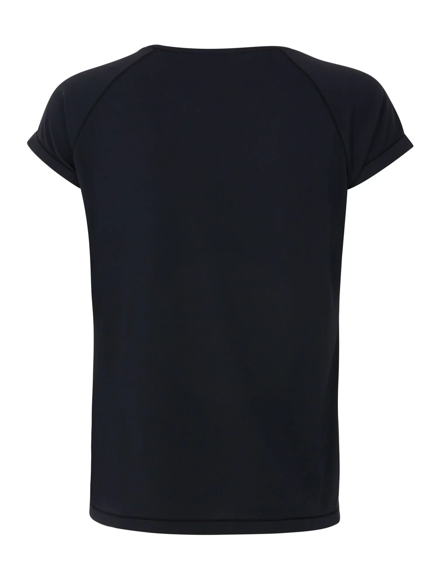 Jemné vyhrnutí na rukávech a logo na hrudi dodávají základnímu designu sportovní šmrnc.