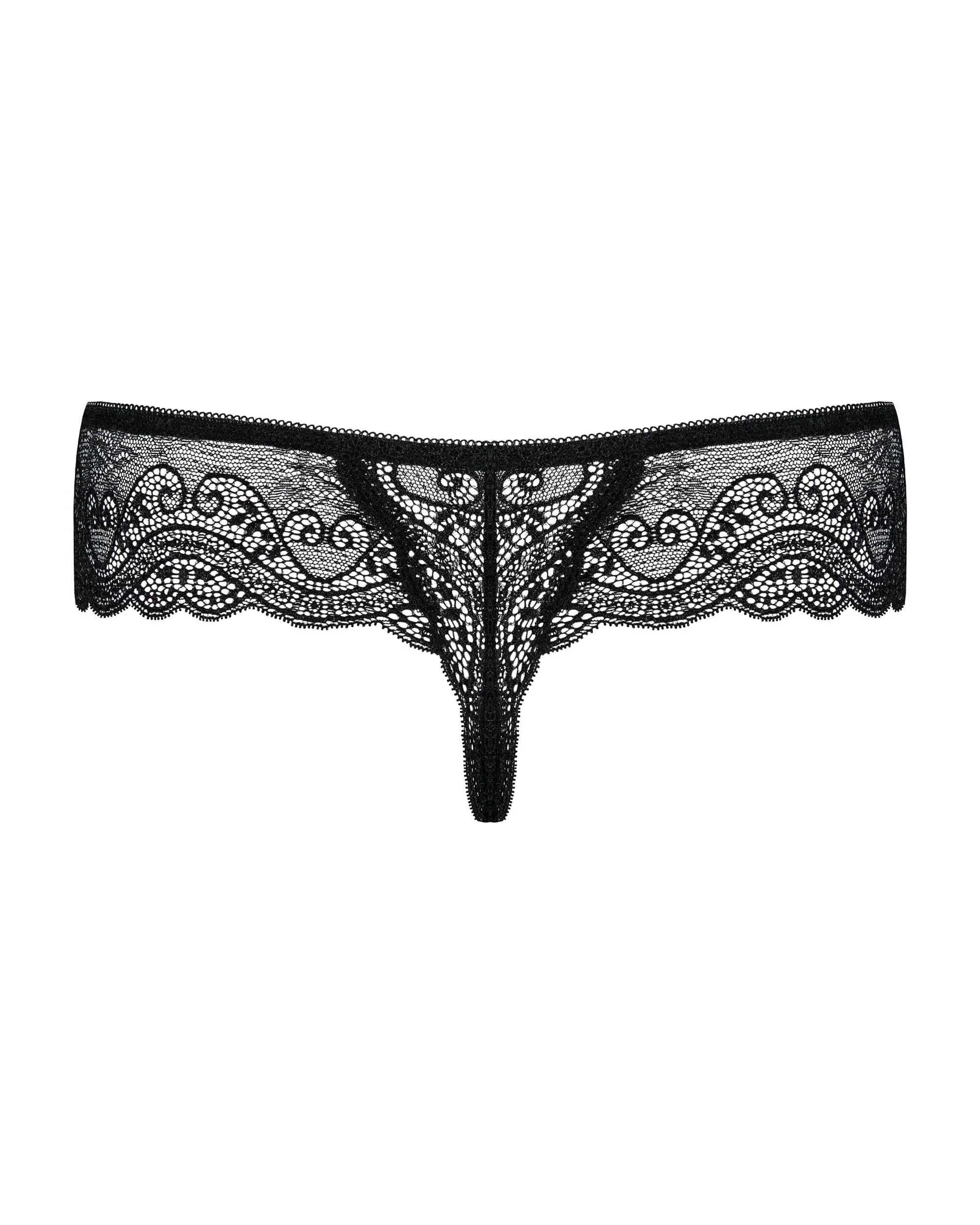 Dámská tanga Miamor thong OBSESSIVE - černá barva - elegantní, krajková tanga - okouzlující lesklé kamínky na předním díle - trojúhelníkový díl zadní strany zdůrazní hýždě a vyzdvihne perfektní tvary - pěkný a elastický materiál
