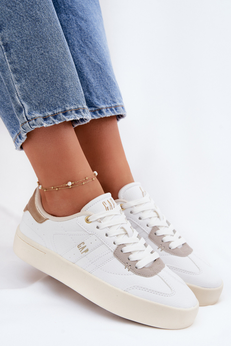 Dámské tenisky značky GAP jsou stylovou a pohodlnou volbou pro každodenní outfity. Model je vyroben z vysoce kvalitních materiálů, které zajišťují dlouhou životnost, komfort nošení a estetický vzhled. Obuv je osazena na módní platformové podrážce, která zdůrazňuje její moderní charakter a zároveň zvyšuje pohodlí při chůzi. Platforma jemně zvedá siluetu a dělá tenisky skvěle vhodné k aktuálním trendům. Měkká vložka zlepšuje komfort nošení a poskytuje odpovídající odpružení při každodenních aktivitách. Po stranách svršku je umístěno logo značky GAP, které dodává botám charakteristický, značkový styl. Díky univerzálnímu střihu se tenisky skvěle hodí k mnoha stylům – výborně kombinují s džíny, látkovými nebo sportovními kalhotami. Ideální volba pro ženy, které ocení spojení pohodlí a módního vzhledu. Při výběru velikosti se řiďte tabulkou velikostí.