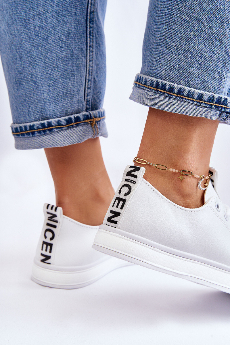 Klasické nízké tenisky jsou nadčasovým modelem, který nikdy nevyjde z módy. Hodí se ke všemu, džínám i volným šatům. Boty ideální pro každodenní použití. Módním doplňkem je ozdoba na patě a jazyku v podobě nápisu NICE. Podívejte se na celou naši nabídku tenisek z ekologické kůže. Při výběru si zkontrolujte tabulku velikostí.