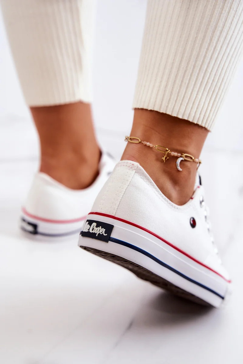 Dámské tenisky Lee Cooper. Klasický model se bude skvěle hodit k džínům, ale i vzdušným šatům. Boty mají měkkou, materiálovou stélku a protiskluzovou podrážku. Lepený model. Špička vyztužená gumovým materiálem. Nezapomeňte se podívat na celou naši kolekci bot Lee Cooper. Při výběru velikosti použijte tabulku velikostí.