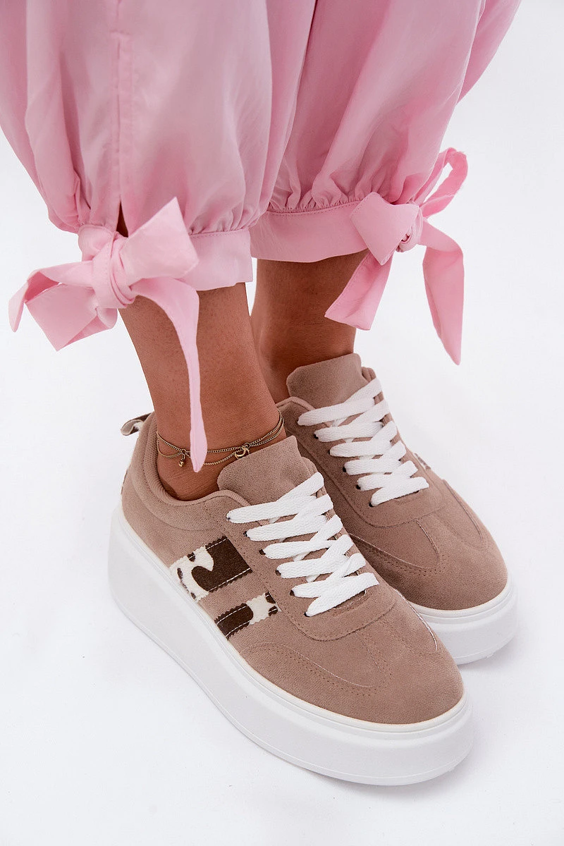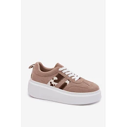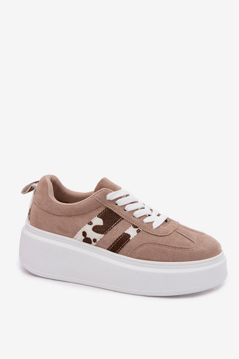 Dámské Tenisky na Masivní Platformě s Umělou Semišovou Nášivkou Béžové Averin