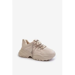 Dámské tenisky na masivní podrážce s ozdobným šněrováním béžové model 21657704 - Boto