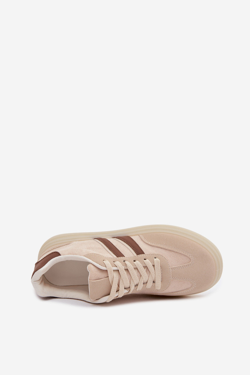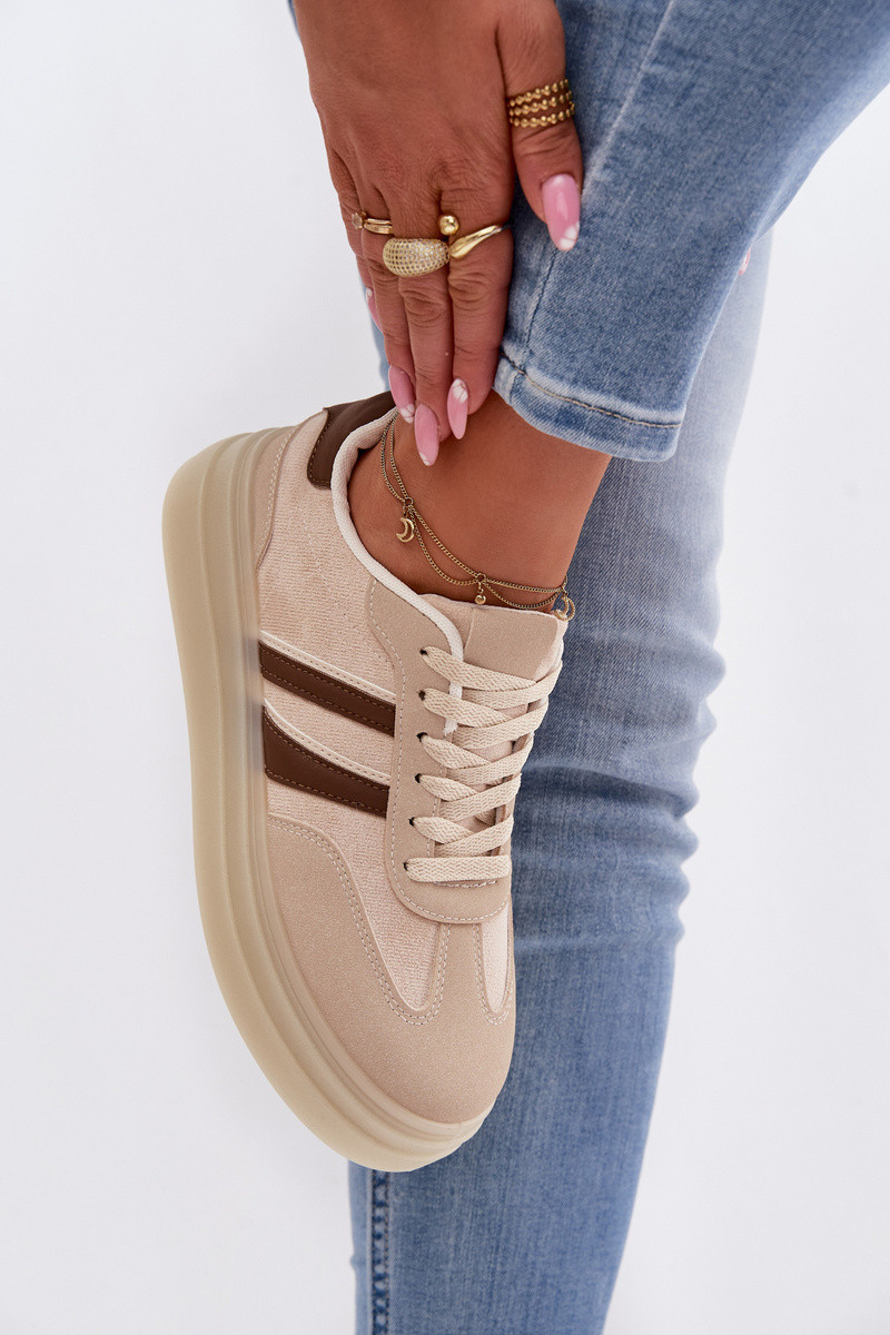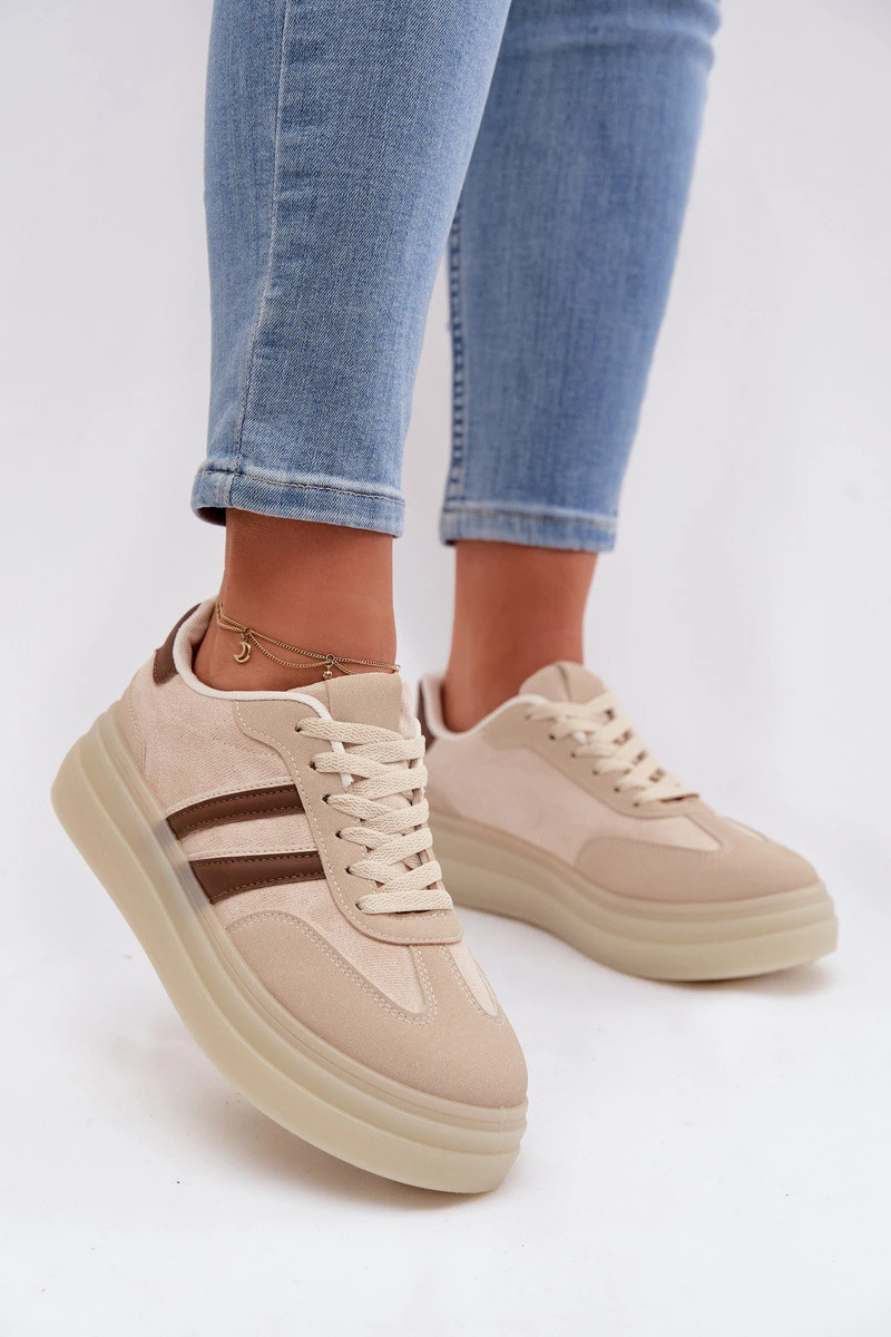 Stylové dámské tenisky z eko semiše jsou pohodlnou volbou na každý den. Model na platformě jemně zvýrazňuje siluetu a zajišťuje stabilitu při chůzi. Dva pásky umístěné z boku dodávají sportovní, moderní vzhled. Měkká pěnová vložka zaručuje pohodlí po celý den, takže tenisky jsou ideální pro každodenní outfity. Při výběru velikosti se řiďte tabulkou velikostí.