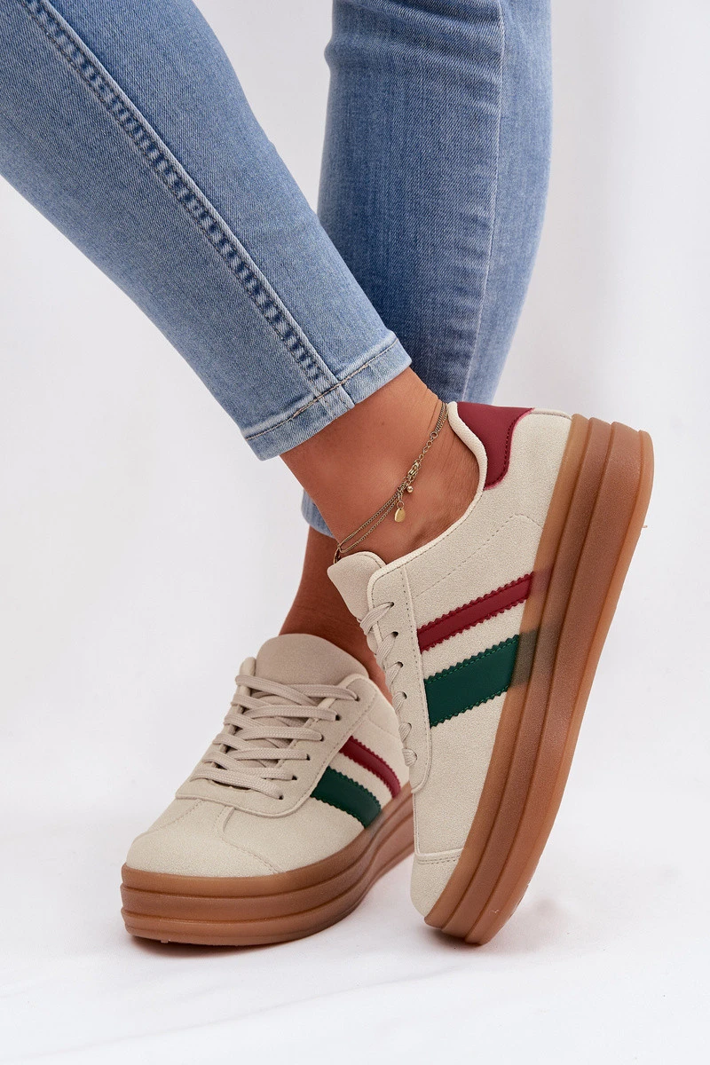 Módní dámské tenisky na platformě představují spojení pohodlí a stylového vzhledu. Platforma decentně zvýrazňuje siluetu a dodává celkovému vzhledu moderní charakter, zatímco měkká vložka zajišťuje komfort po celý den. Tento model se skvěle hodí do každodenních outfitů a výborně ladí jak s džíny, tak s látkovými kalhotami. Při výběru velikosti se řiďte tabulkou velikostí.