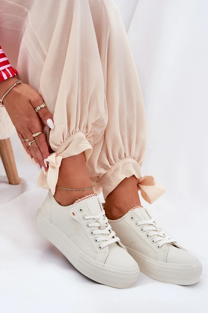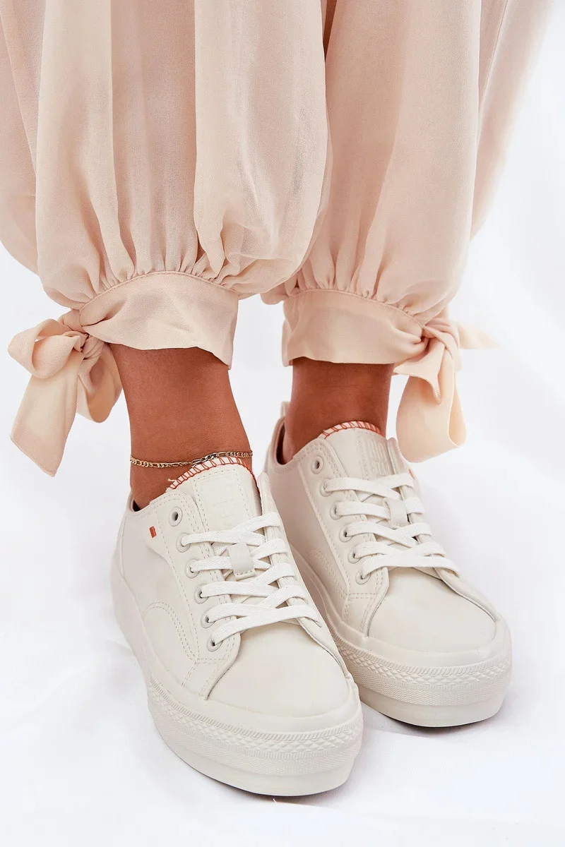 Styl a pohodlí v jednom – to vystihuje dámské tenisky Big Star ve světle béžovém provedení. Vyvýšená platforma opticky prodlouží postavu a zároveň poskytuje pohodlnou oporu chodidlu. Eko kůže v decentní barvě působí moderně a elegantně, ať už je obujete ke sportovnímu nebo ležérnímu outfitu.