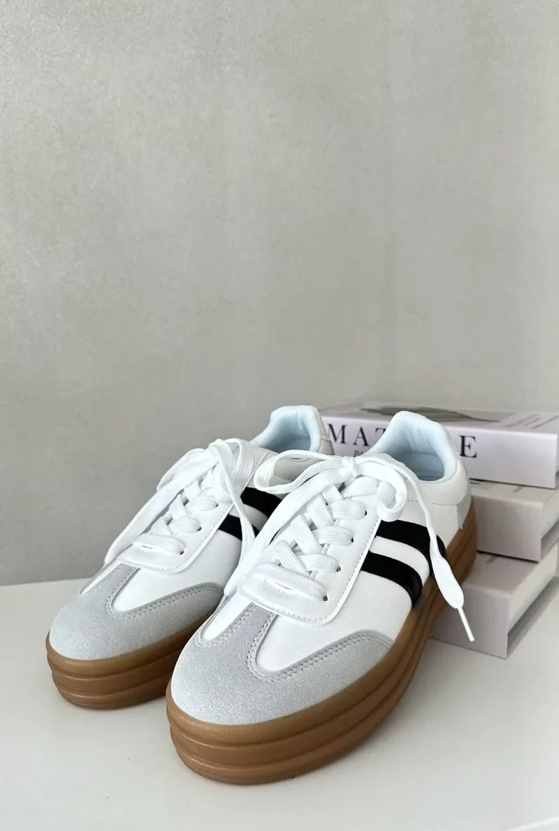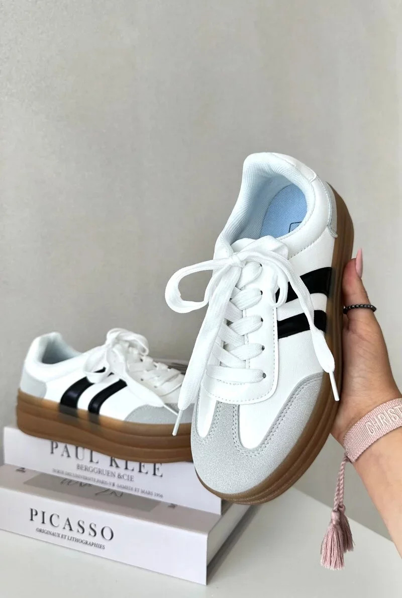 Módní dámské tenisky na platformě, která přidává nejen několik centimetrů výšky, ale také stylový vzhled. Měkká, pěnová vložka zajišťuje pohodlí při chůzi po celý den. Ideální pro každodenní stylizace, skvěle se hodí jak k džínům, tak k šatům, dodávají každému outfitu. Tyto tenisky jsou nezbytností v šatníku každé ženy, která chce zdůraznit svůj módní styl. Při výběru velikosti se prosím řiďte tabulkou velikostí.