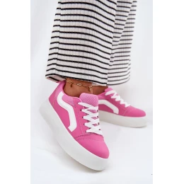 Dámské sneakersy z eko kůže jsou vynikající volbou na každodenní nošení, kombinující styl a komfort. Usazené na platformě, zajišťují pohodlí a dodatečnou stabilitu. Zaoblené špičky zaručují svobodu pohybu a měkká stélka pokrytá materiálem se stará o komfort po celý den. Klasický střih těchto sneakersů způsobuje, že se skvěle hodí k každodenním stylizacím, nabízející jak funkčnost, tak módní vzhled. Při výběru velikosti se řiďte tabulkou velikostí.
