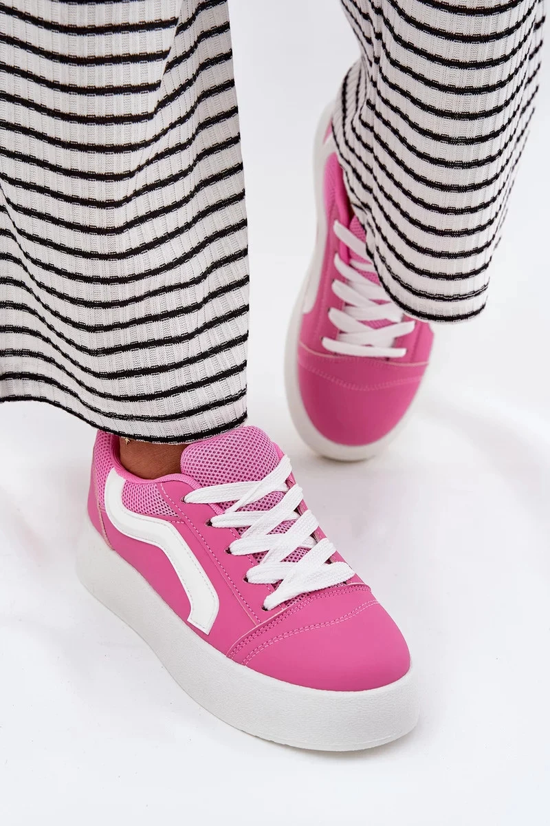Fuchsiové tenisky krásně doplní neutrální outfity — zkombinujte je s džínami, černými legínami nebo jednoduchým tričkem pro energetický a moderní look.