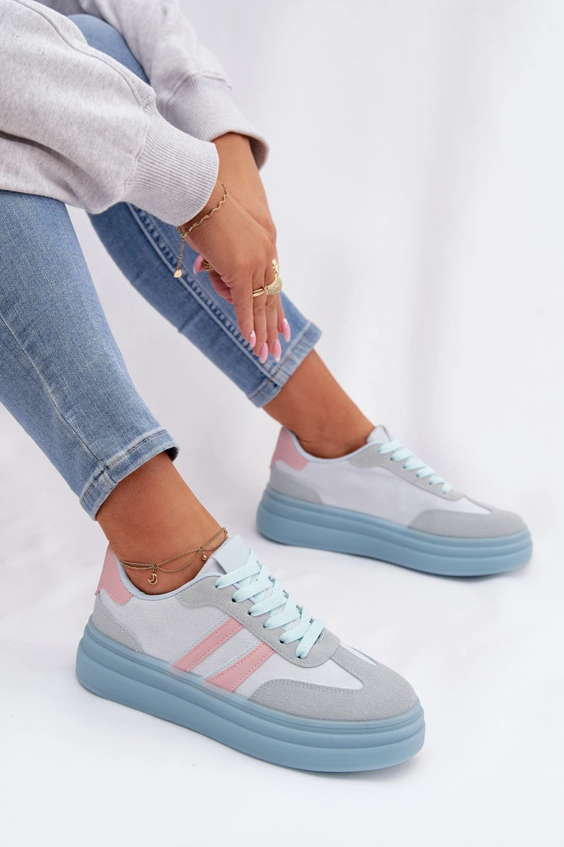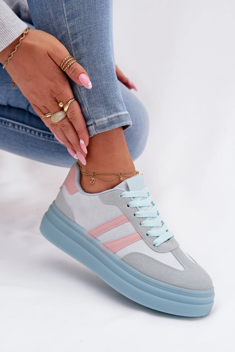 Stylové dámské tenisky z eko semiše jsou pohodlnou volbou na každý den. Model na platformě jemně zvýrazňuje siluetu a zajišťuje stabilitu při chůzi. Dva pásky umístěné z boku dodávají sportovní, moderní vzhled. Měkká pěnová vložka zaručuje pohodlí po celý den, takže tenisky jsou ideální pro každodenní outfity. Při výběru velikosti se řiďte tabulkou velikostí.