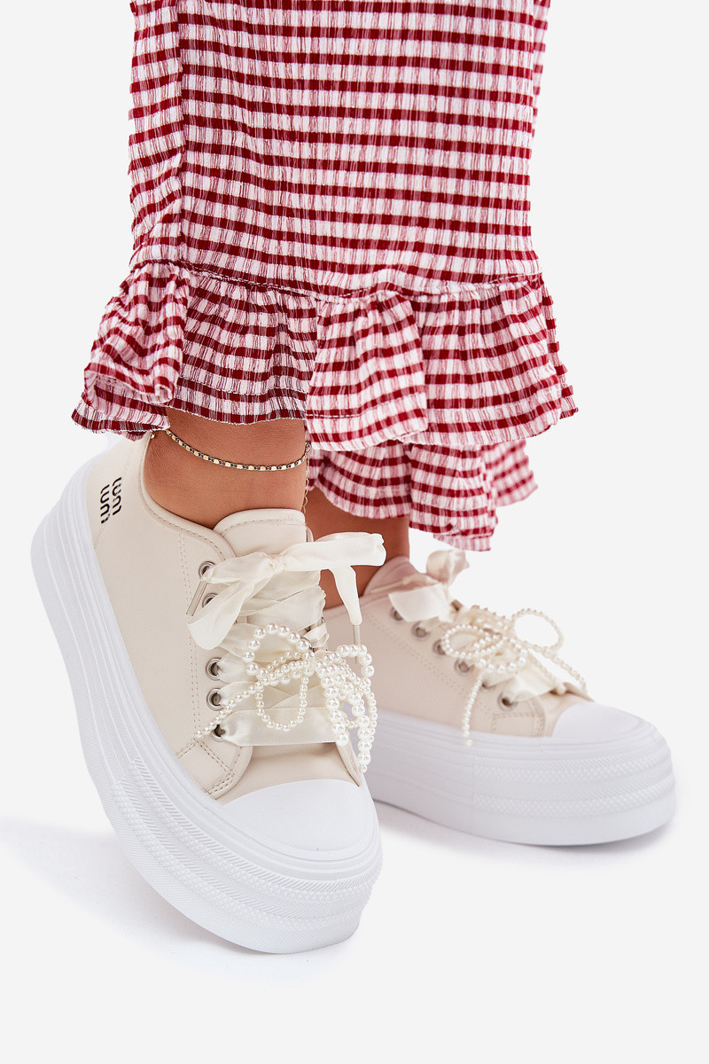Dámské Tenisky Na Platformě S Dekorativním Šněrováním Béžové model 21701280 - Boto