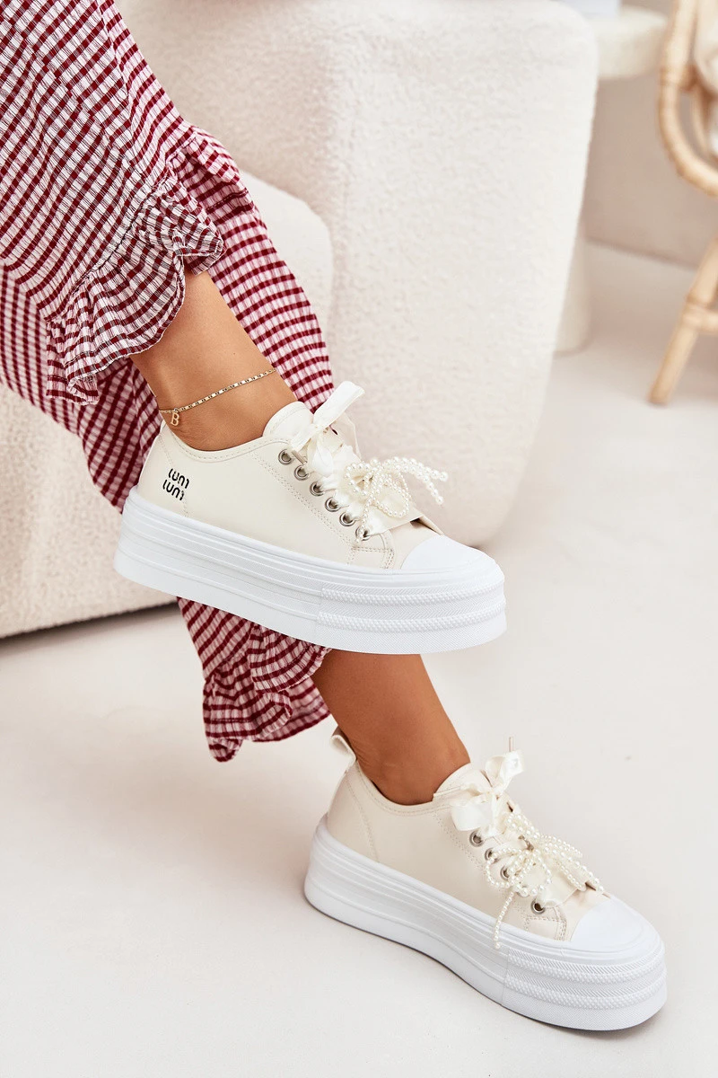 Přidání recenze k Dámské Tenisky Na Platformě S Dekorativním Šněrováním Béžové model 21701280 - Boto