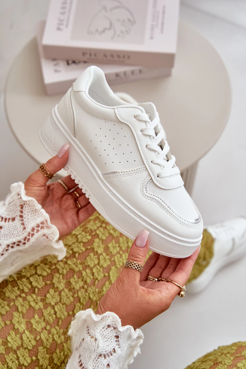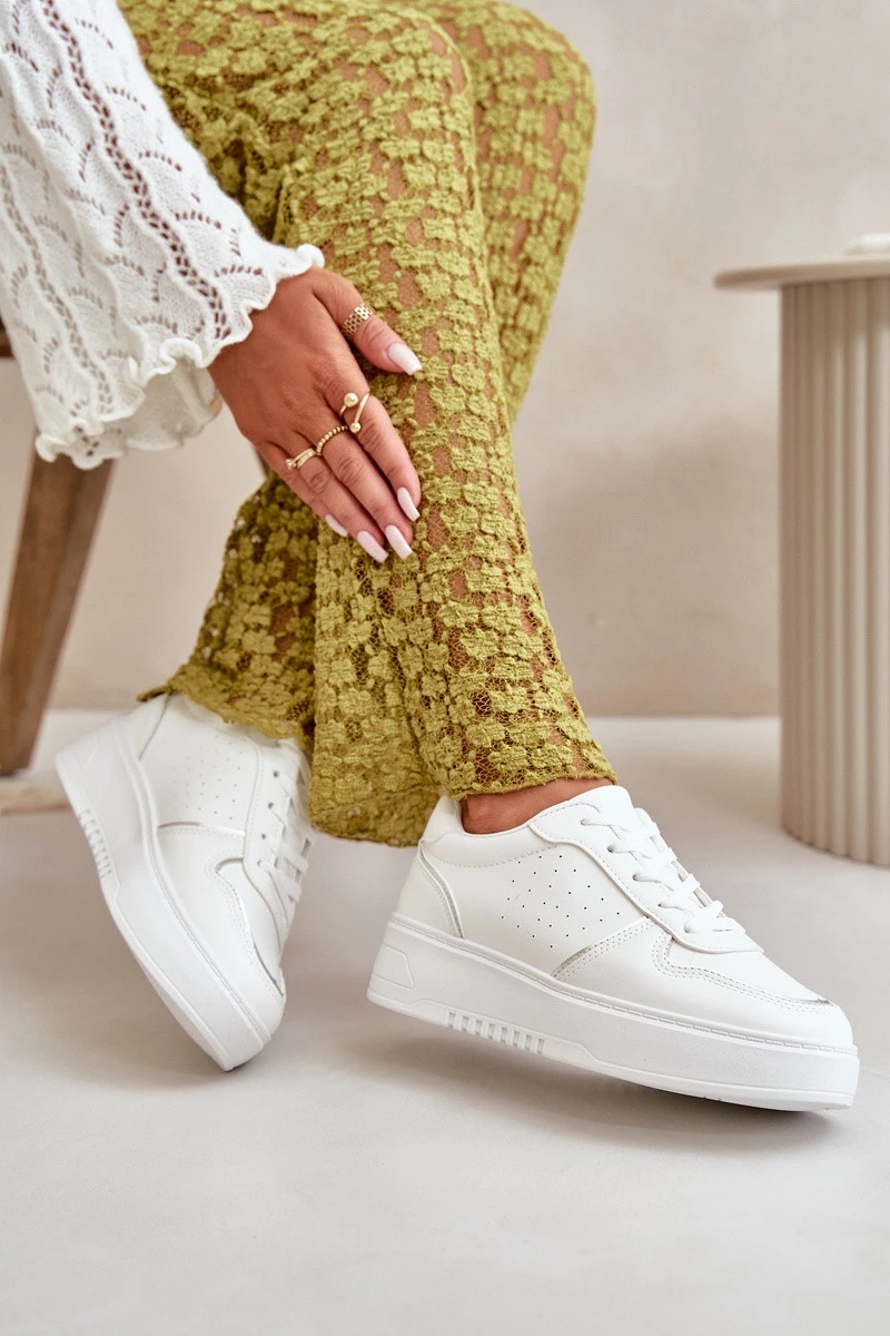 Dámské Tenisky Na Platformě S Dekorativním Šněrováním Bílé Mistra
