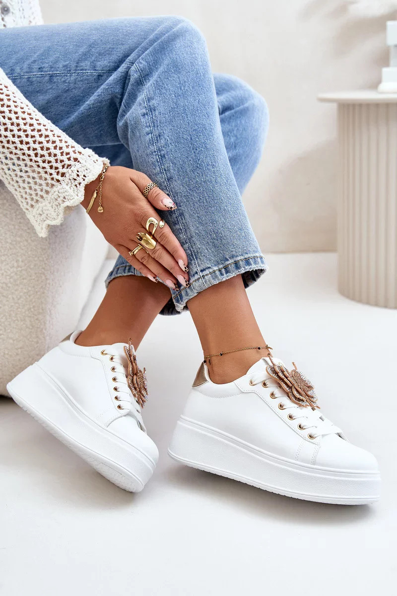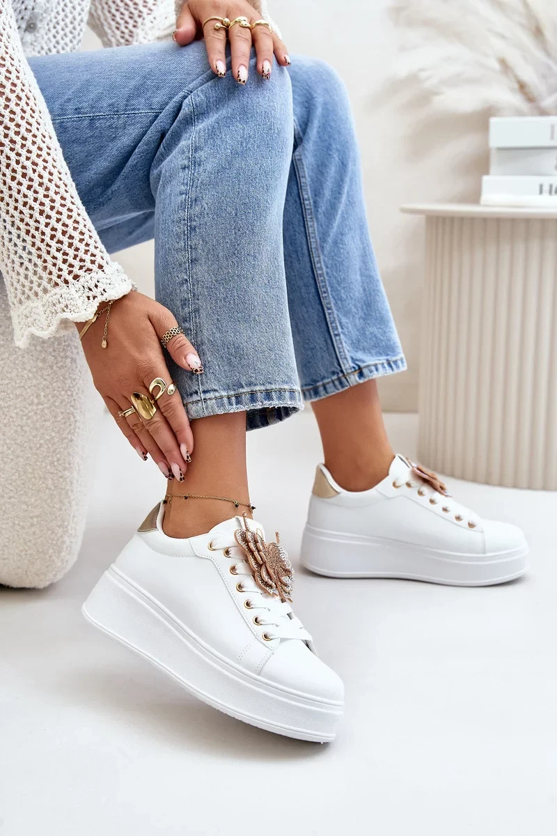 Dámské Tenisky Na Platformě S Motýlem Bílo-Zlaté Naritevia